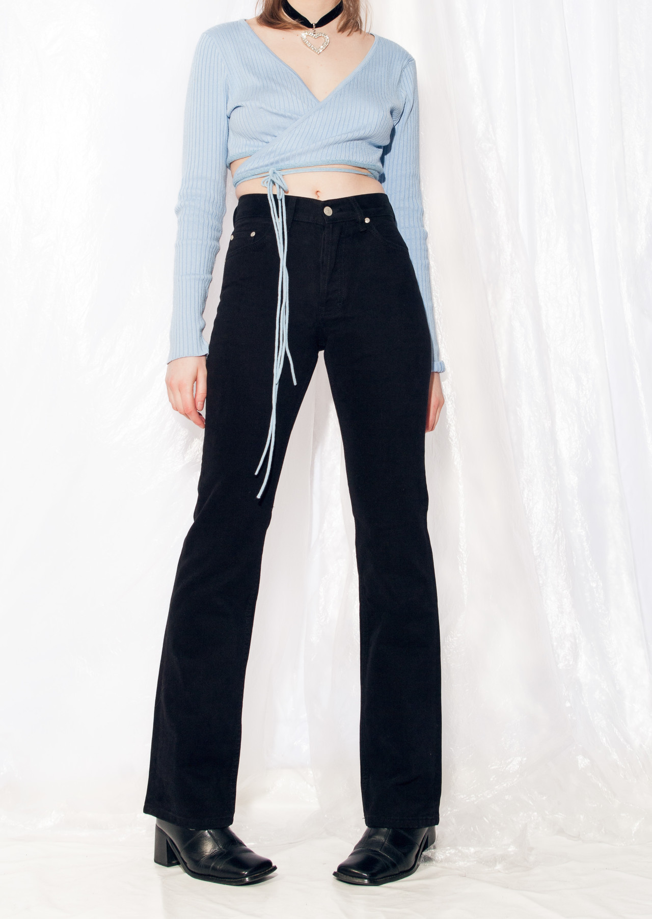 Vintage wide-leg trousers 90s tie front cropped blue pants
