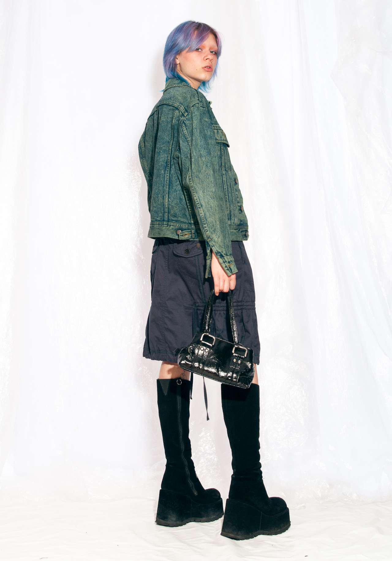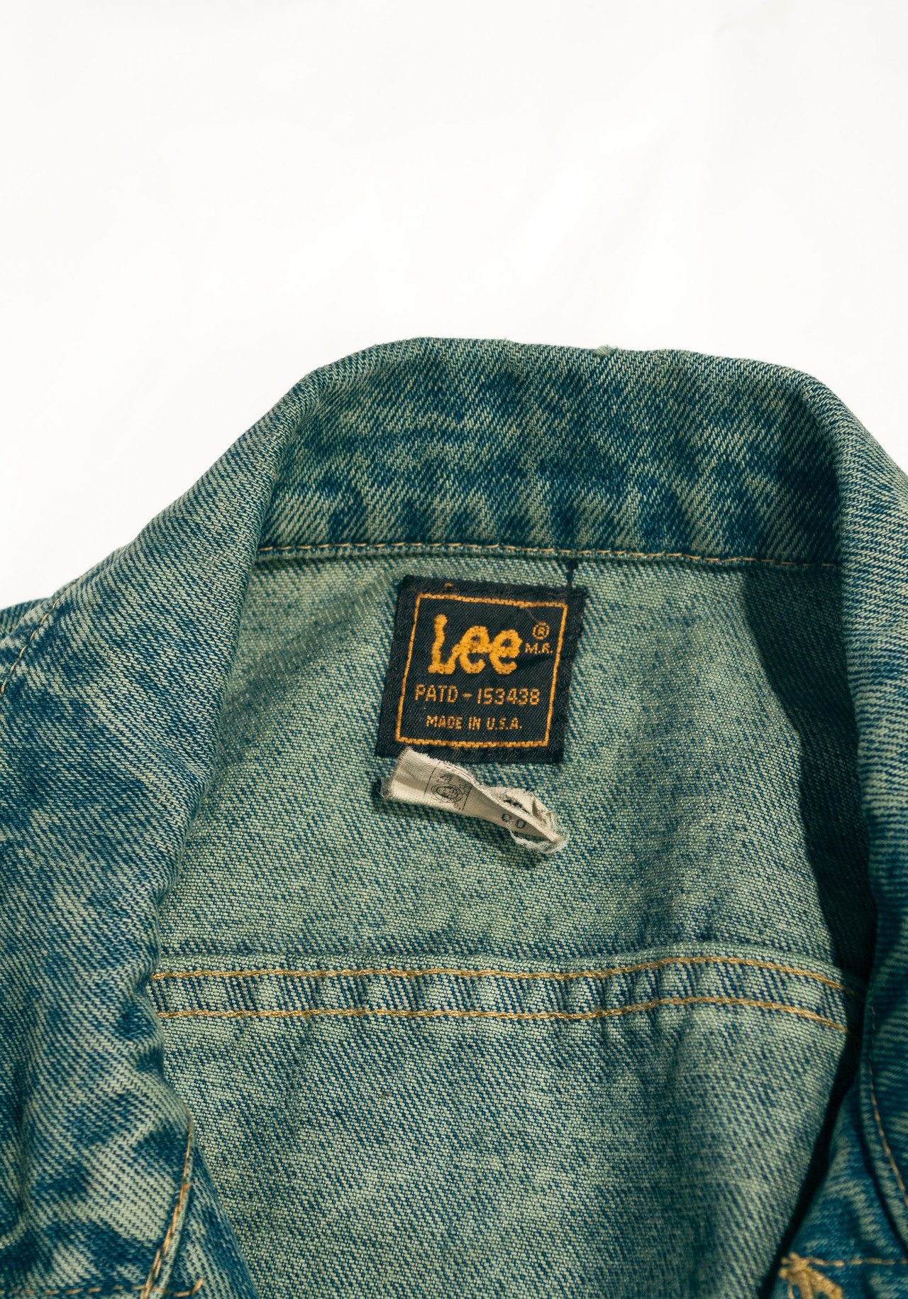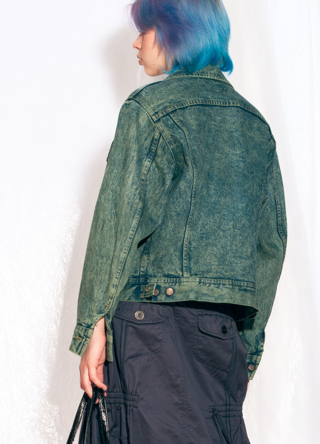 Vintage Lee Denim Jacket 80s Reworked Overdyed Coat in Green