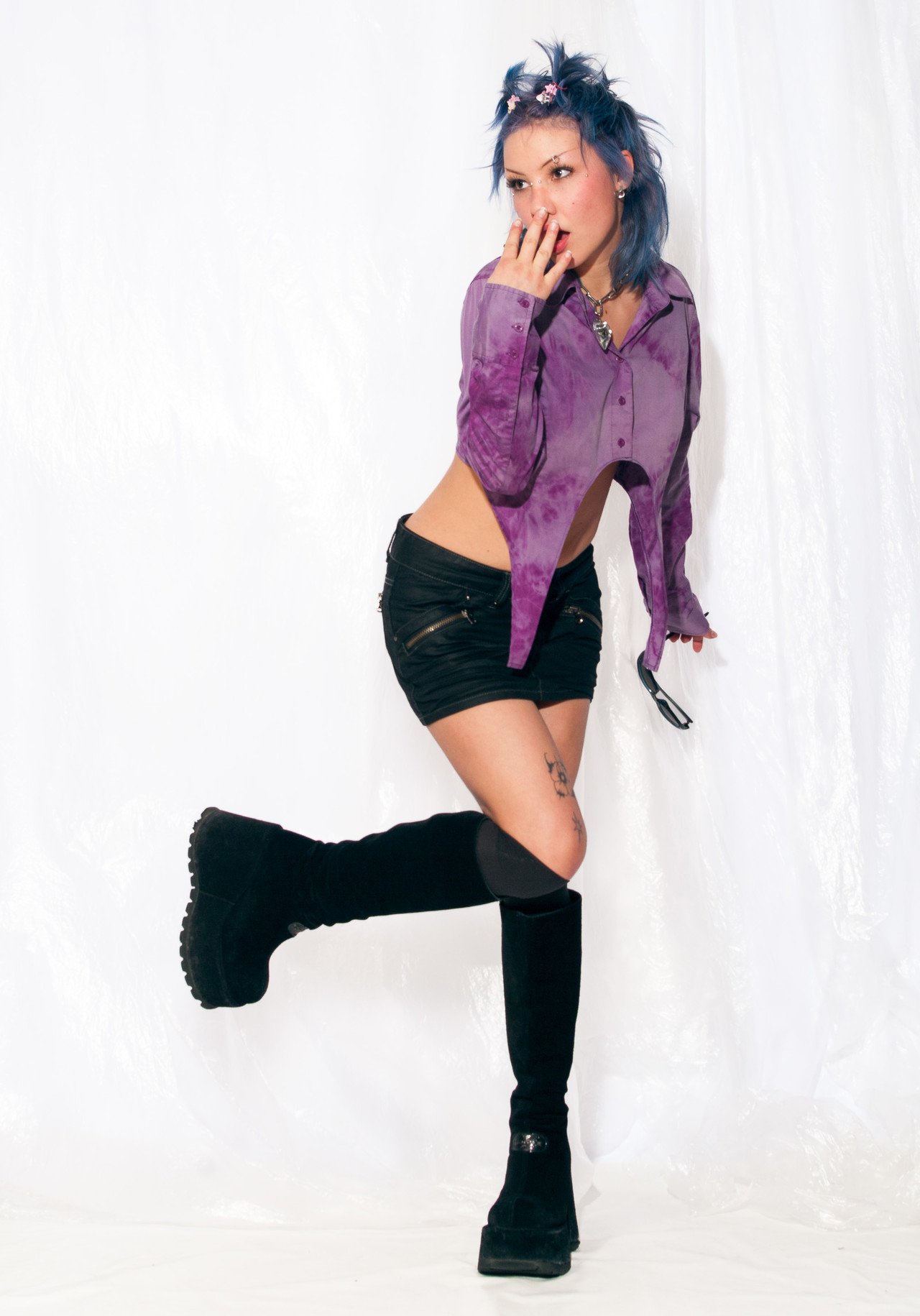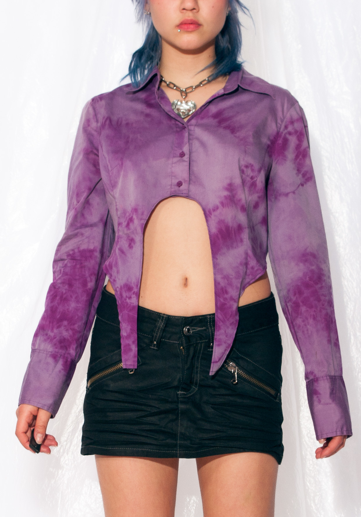 This purple Y2K vintage shirt has been around longer than today’s TikTok trends. Plus, the reworked butterfly wing hem adds an extra flair that’ll have everyone asking “where did you get that shirt?”