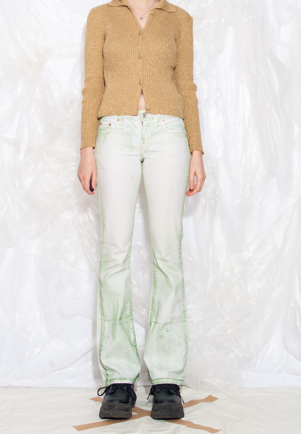 Be the first to review “Vintage Y2K Levi’s Flare Jeans in Green White Hand-Painted” Cancel reply