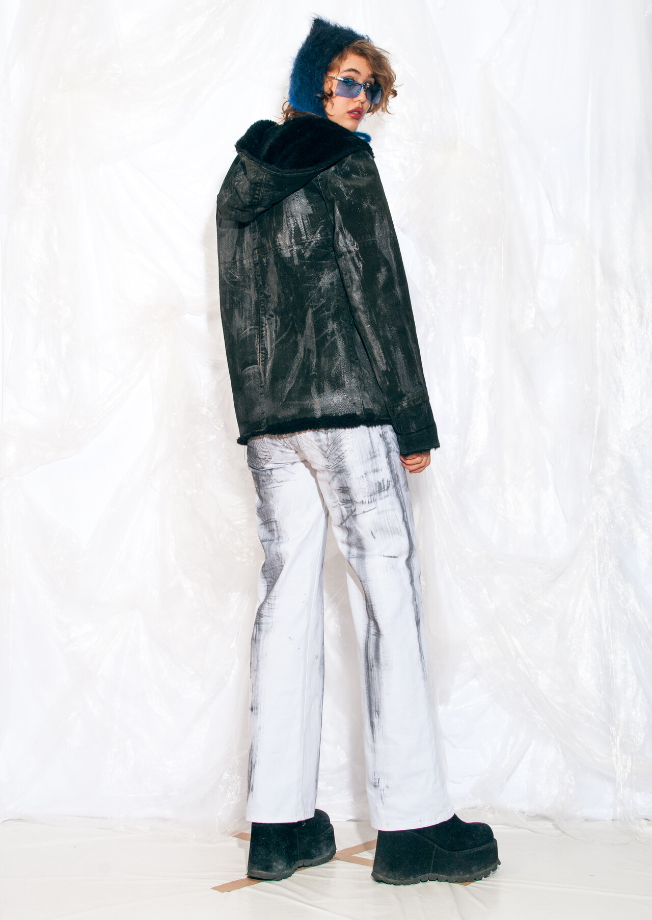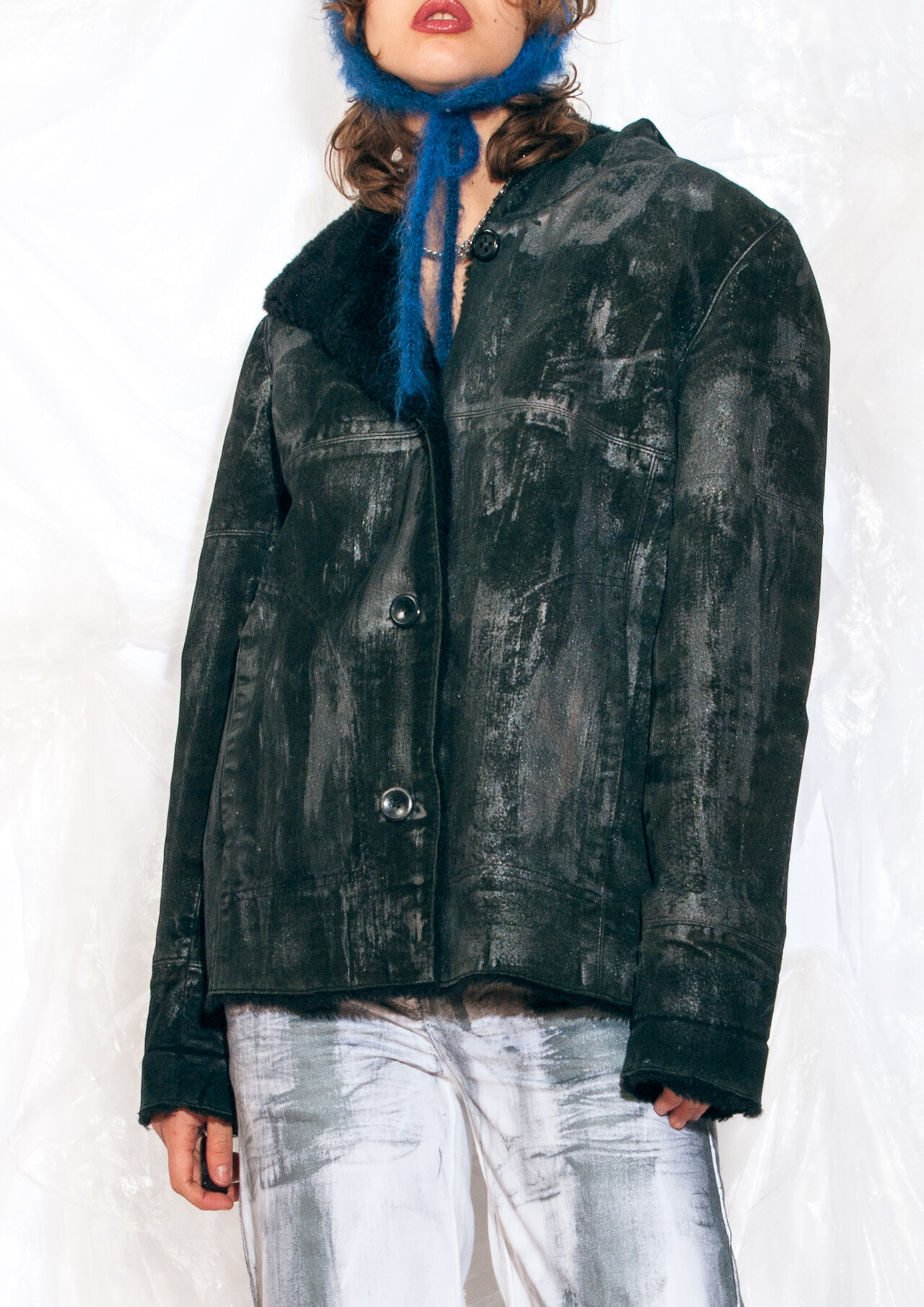 This grungy Y2K vintage coat is the fashion equivalent of a mosh pit – unexpected, full of energy, and definitely turns heads. Bring an edgy vibe to winter with this reworked, hand-painted masterpiece.