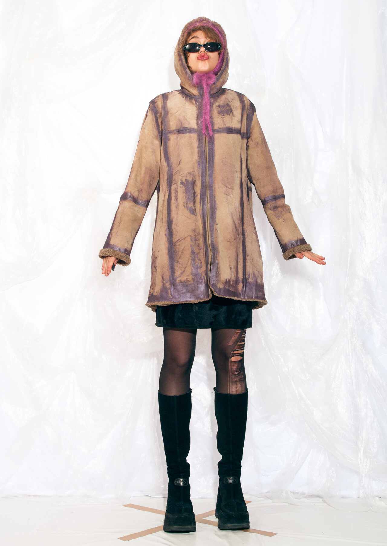 Meet this Y2K vintage coat, reworked and hand-painted in all its real leather, hooded glory. Slip it on and strut the streets like a time-travelling fashionista.
