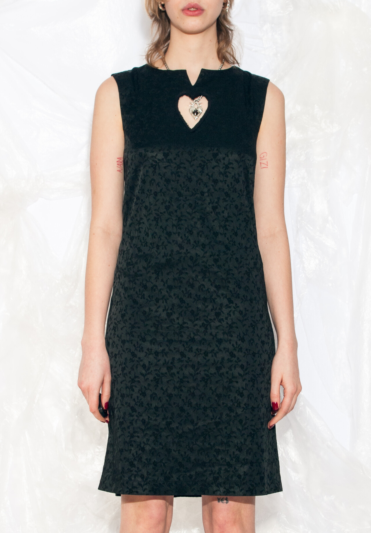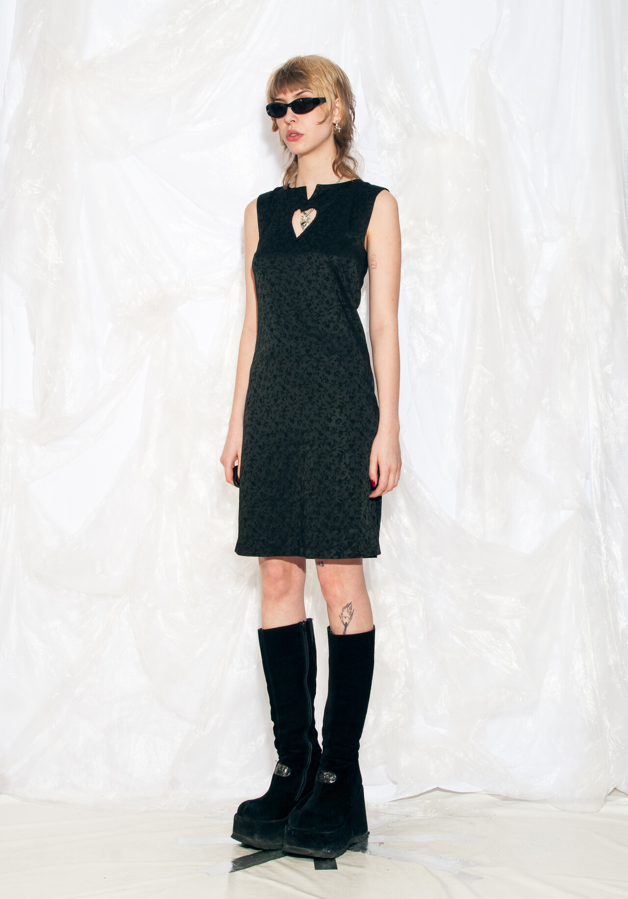 Vintage Y2K Reworked Mini Dress in Black w Cut-Out Heart