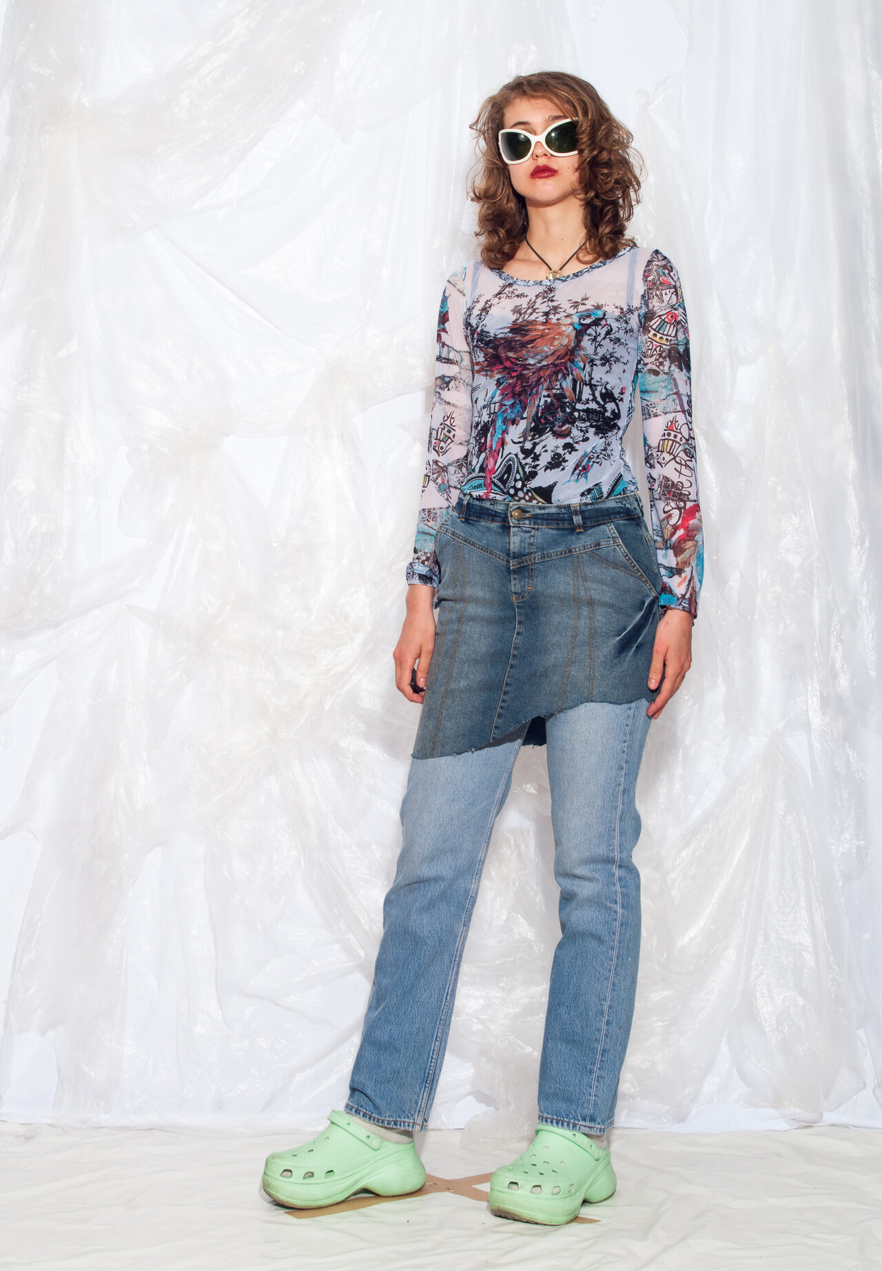 This Y2K vintage skirt – raw hem and an asymmetric cut for those who like to keep it quirky and oh-so-early-2000s.