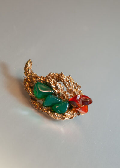 Vintage Brooch 80s Gold Plated Leaf Semiprecious Stone Pin