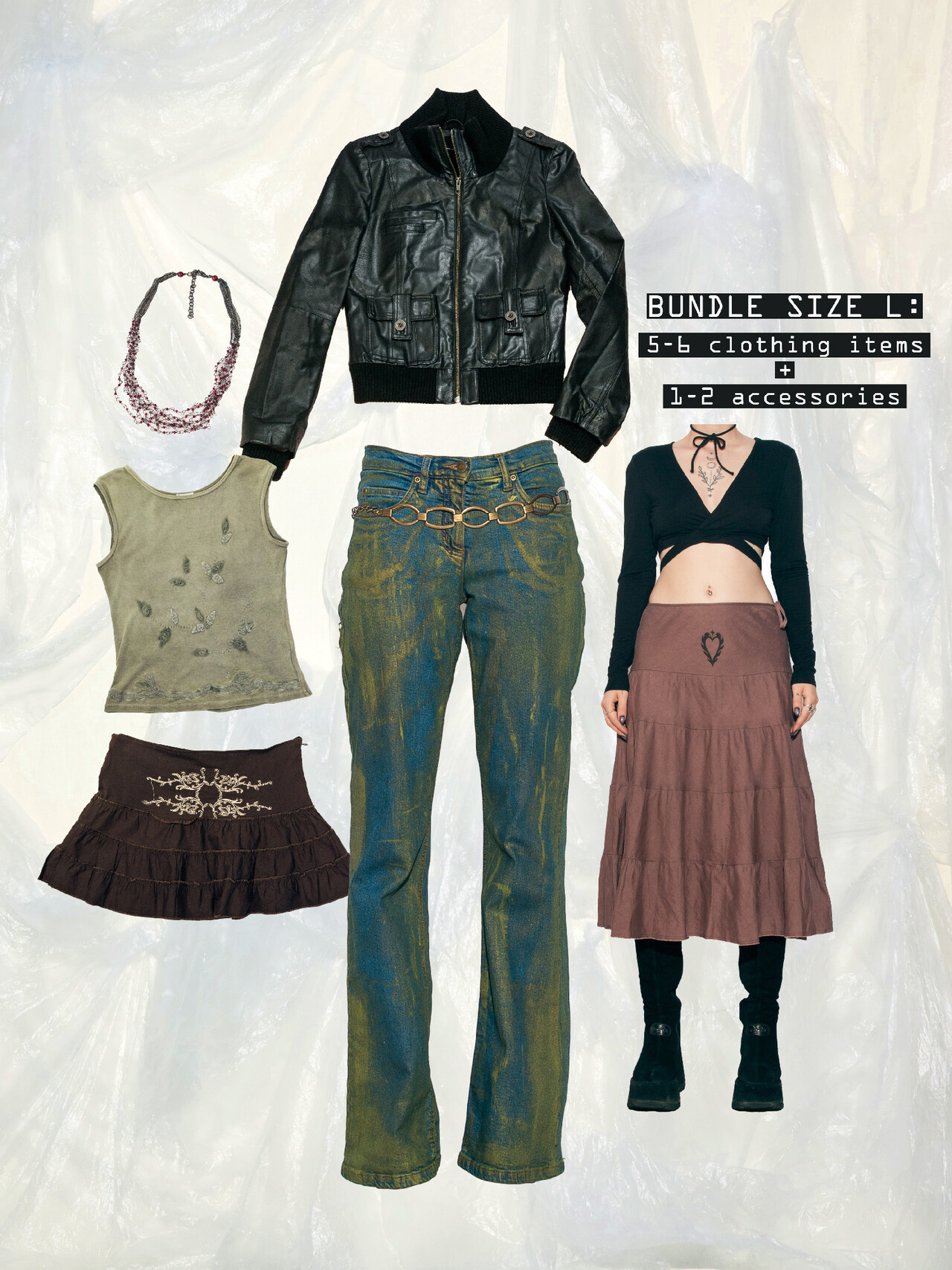This is our large Style Bundle – You will receive 5-6 clothing items with 1-2 matching accessories. We’ll curate pieces that complement each other, allowing you to create various outfits by mixing and matching them.