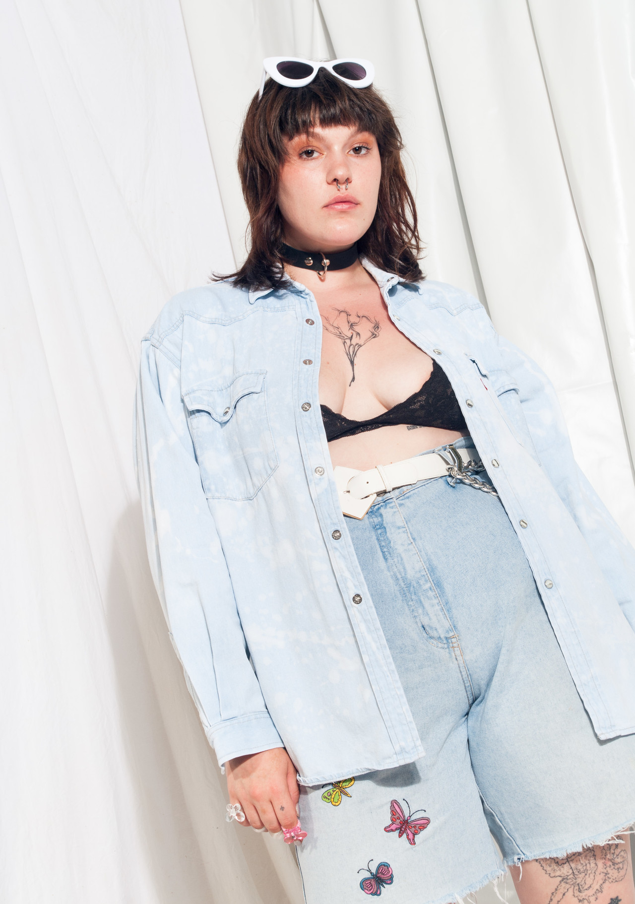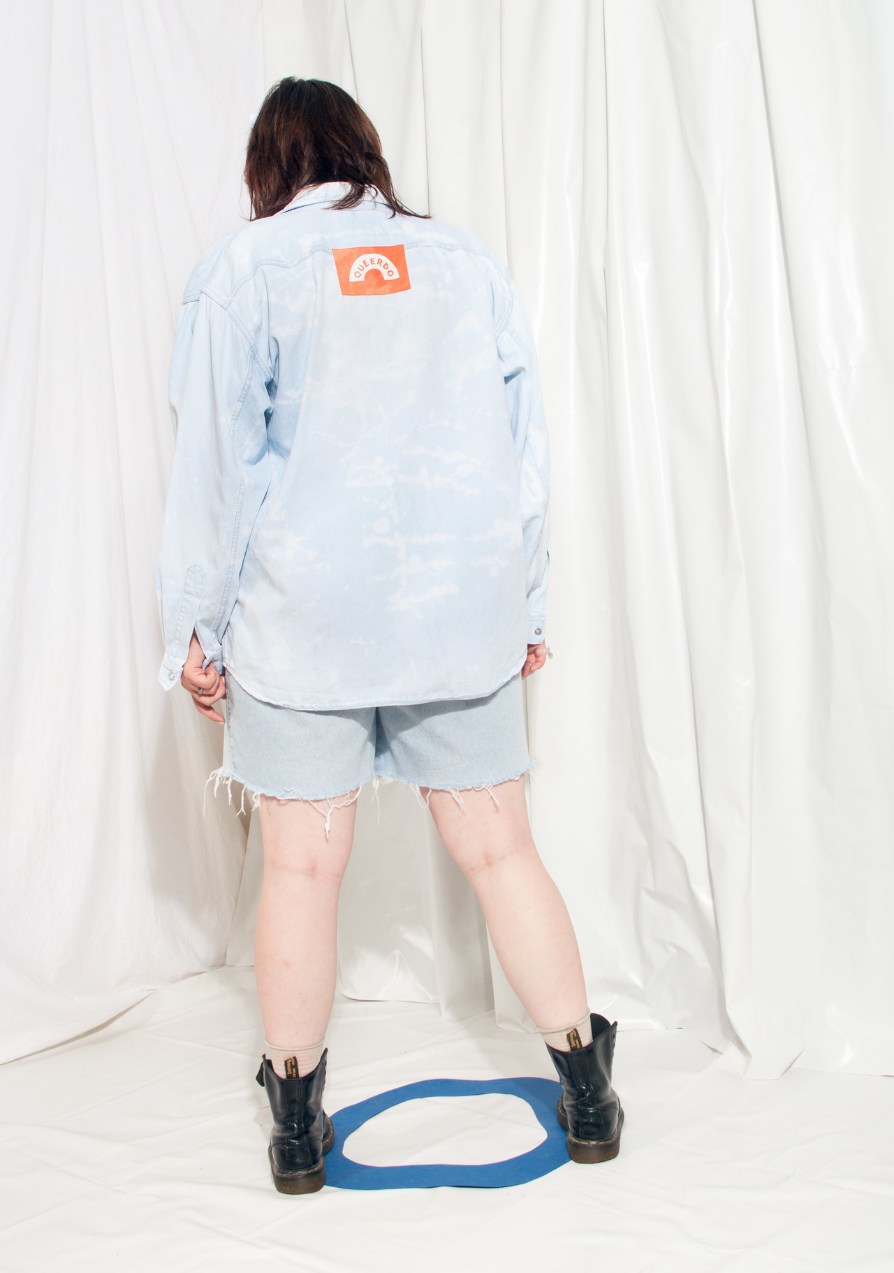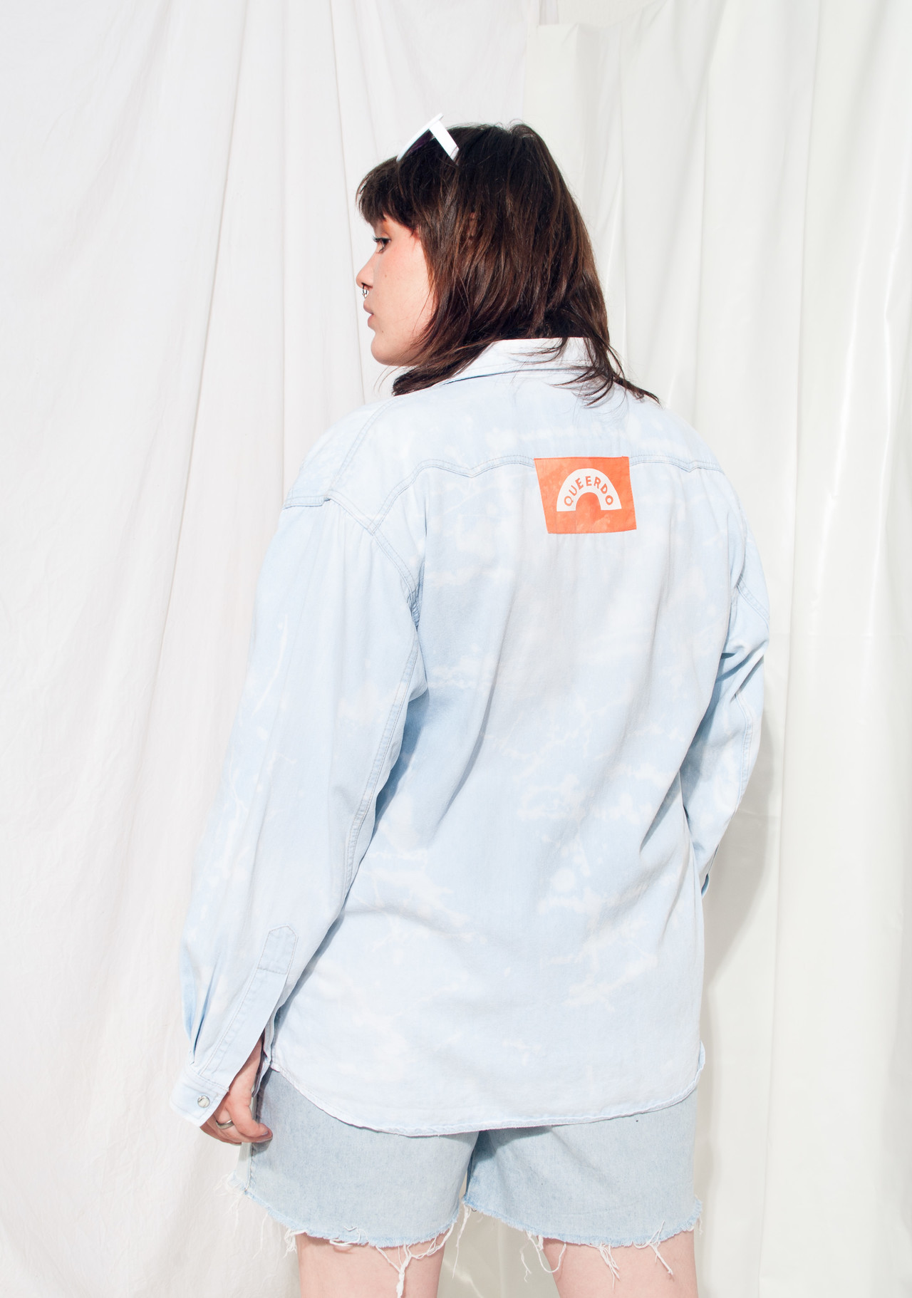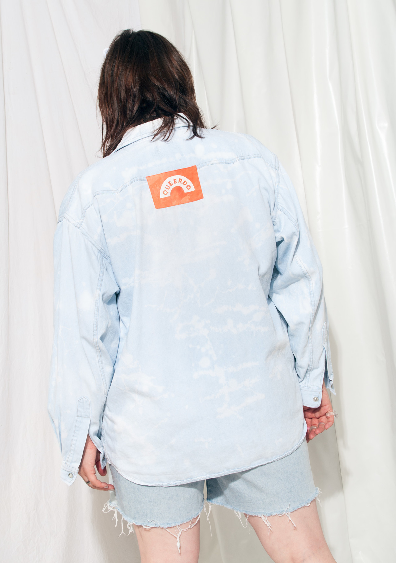 Reworked vintage Levi’s denim shirt straight from the 90s. We acid-dyed this babe and sewed one of our hand-printed QUEERDO patches on its back. It has two pockets and snap fasteners at front. Can be worn as a shacket too, thrown over a crop top. It’s a unisex, oversized piece, so it fits more sizes. Please check the exact measurements!