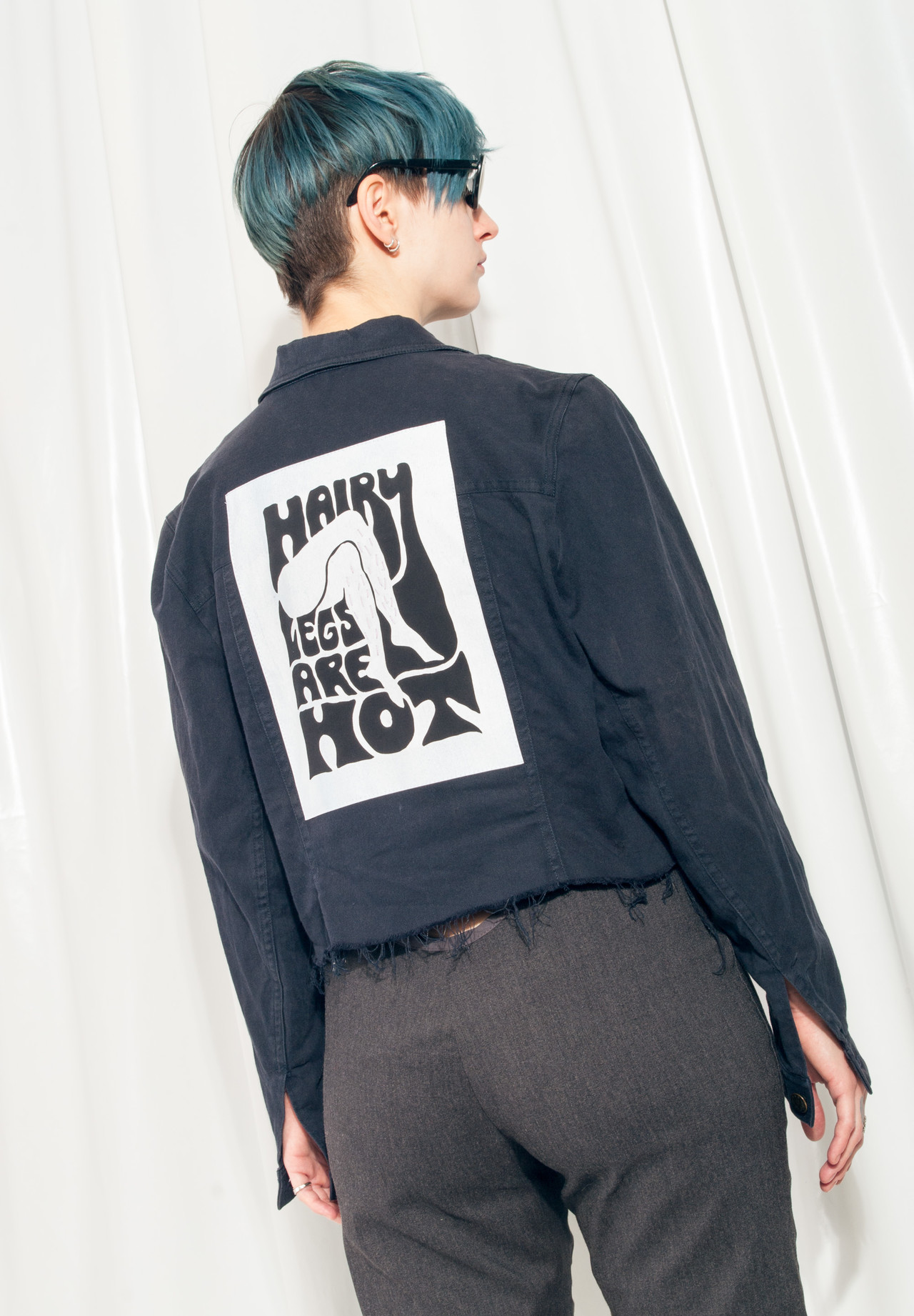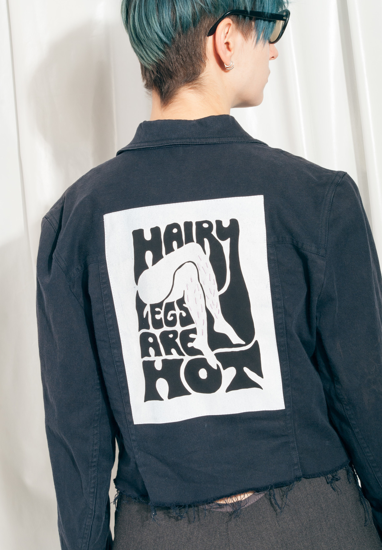 Pop Sick reworked vintage denim jacket straight from the 80s that we cropped to perfection. Then we added one of our hand-embroidered Hairy Legs Are Hot patches. It’s our own graphic and we screen printed it at our small home studio. This jacket is a real vintage babe that’s still in great condition. It features bronze buttons and two pockets.