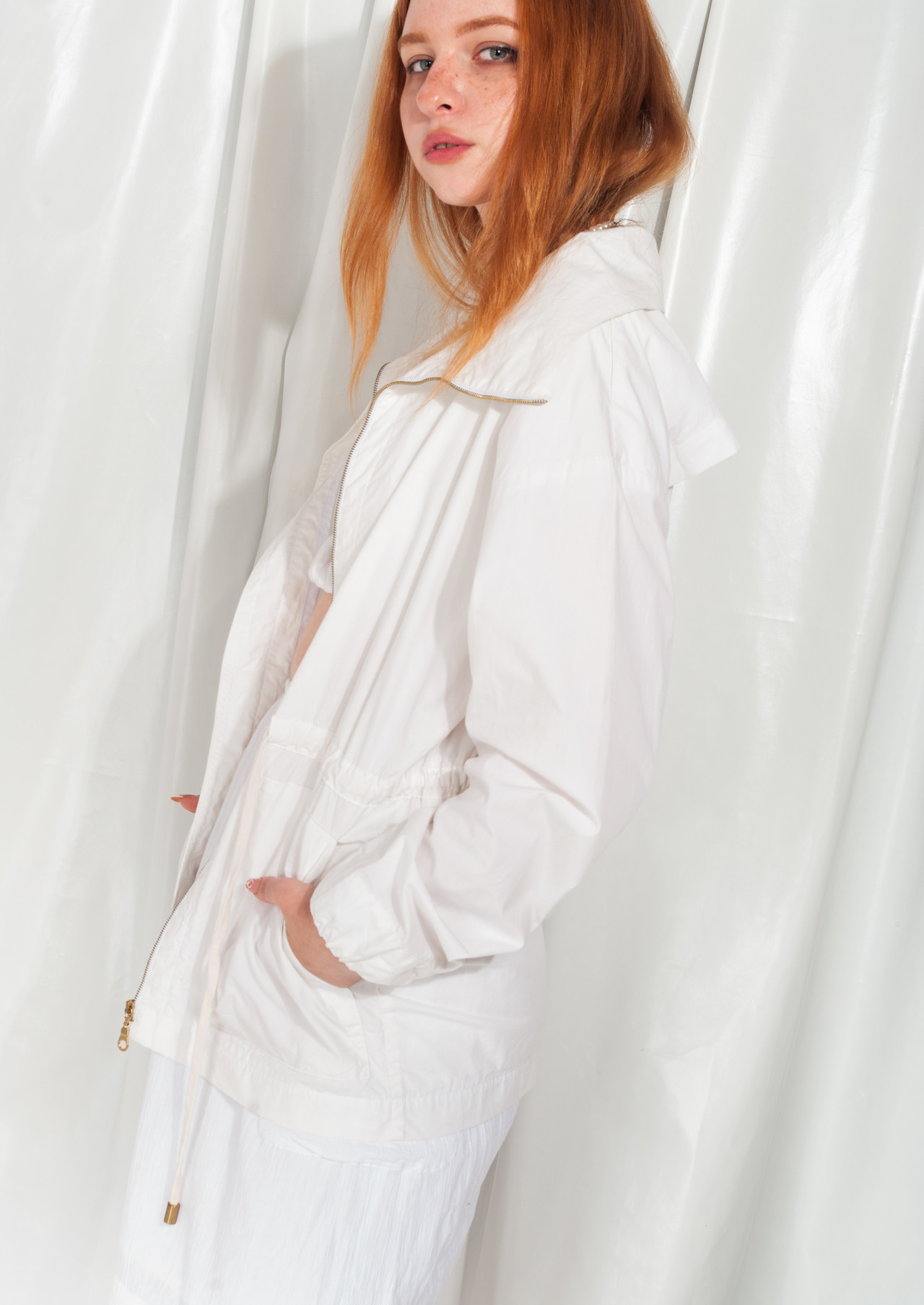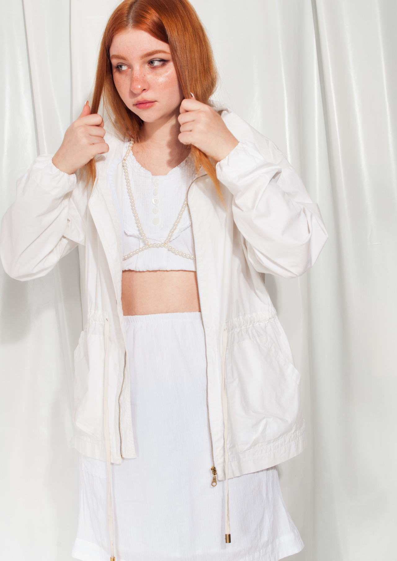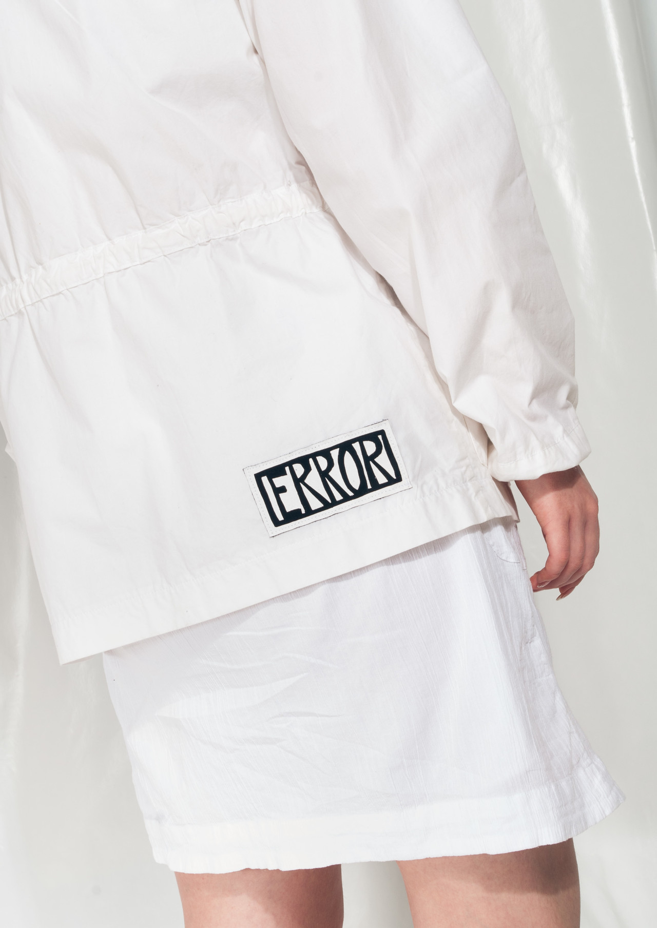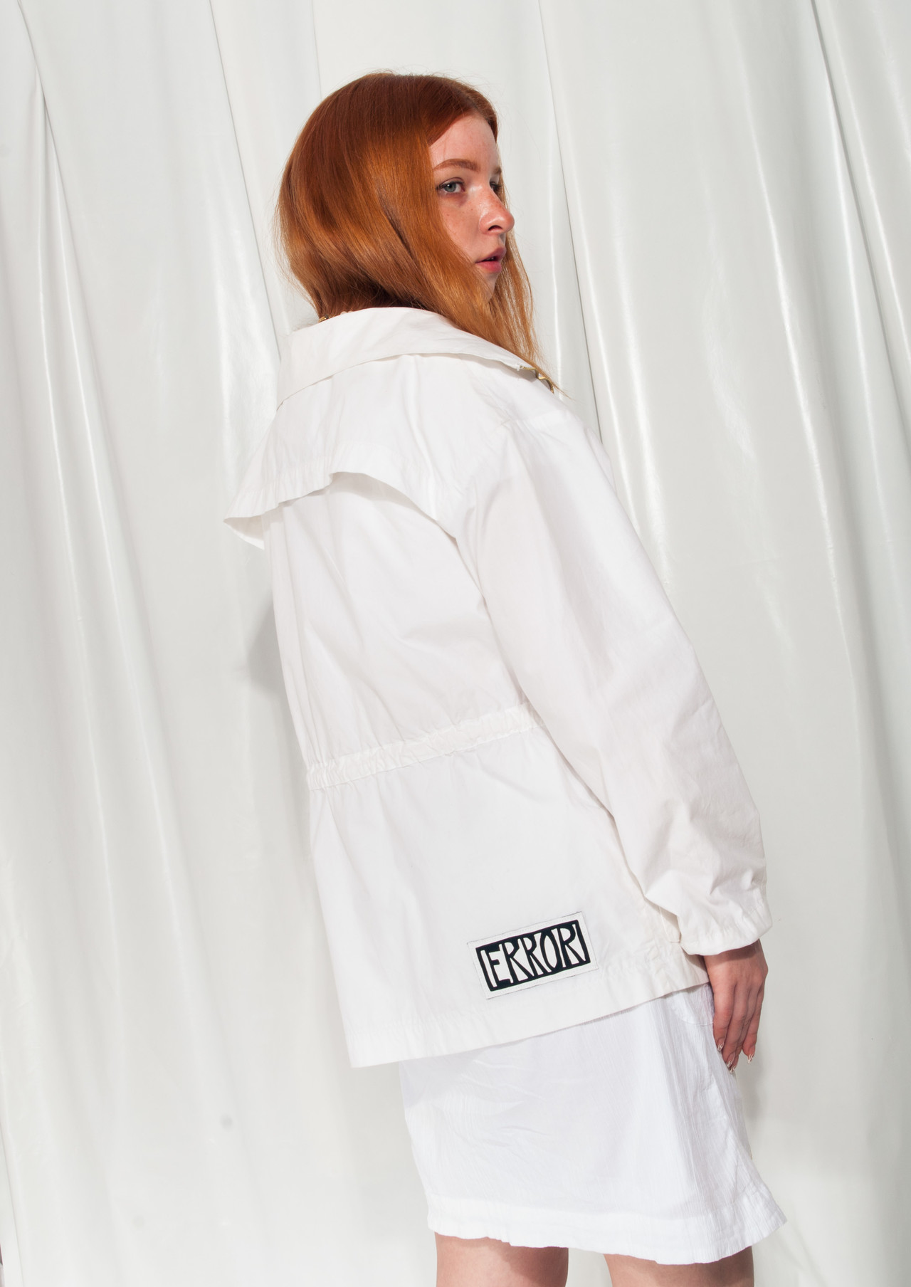 White vintage jacket, classic 90s item in great condition. Zip closure, cotton fabric, drawstring at waist and two pockets. We even added a hand-printed ERROR patch to make it cooler.