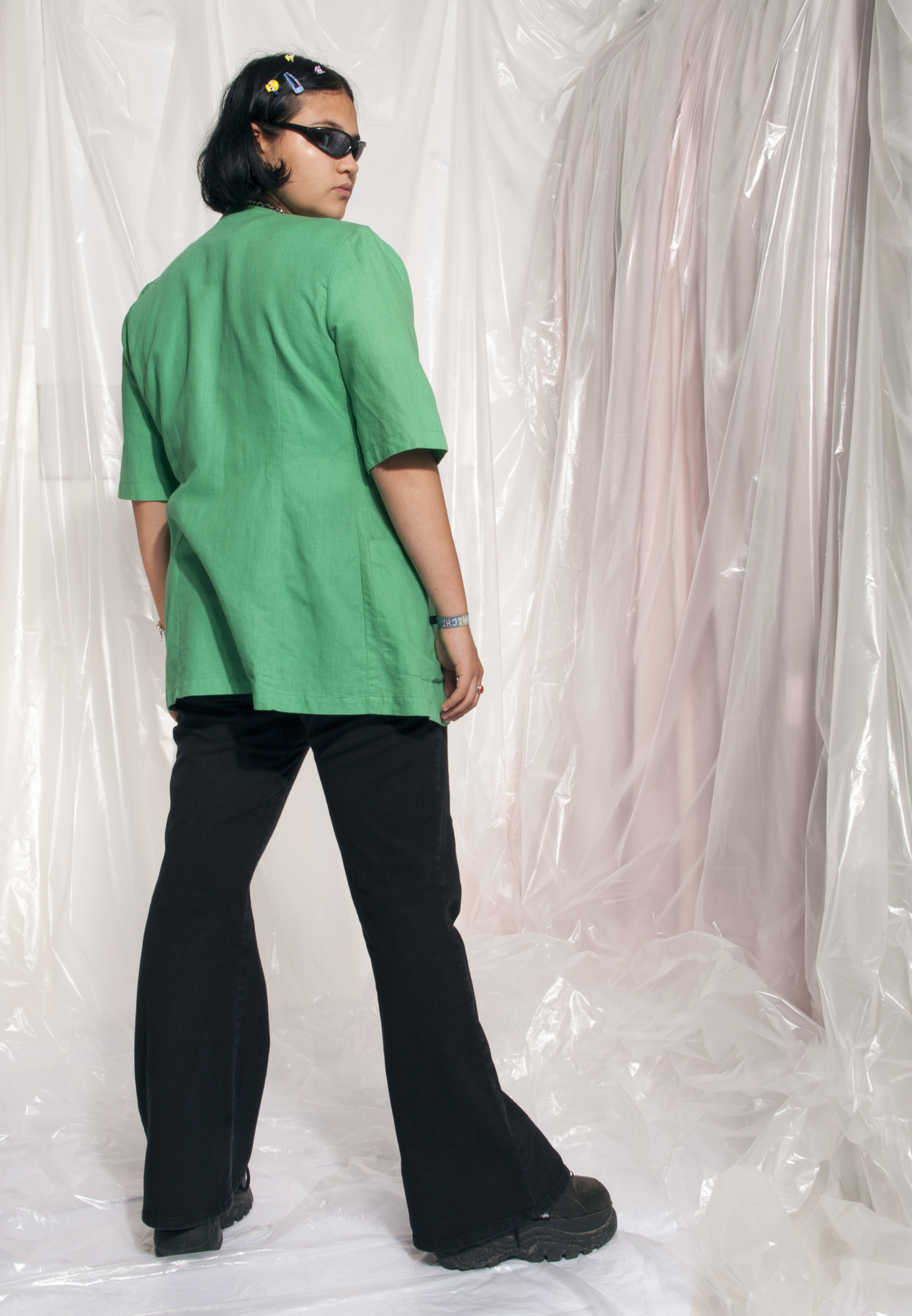 Totally rad slime green vintage blazer from the 80s. This beauty was made in Italy from natural linen fabric and it survived all these years in great condition. It’s unlined and has two pockets. Perfect for layering with mom jeans and crop tops.
