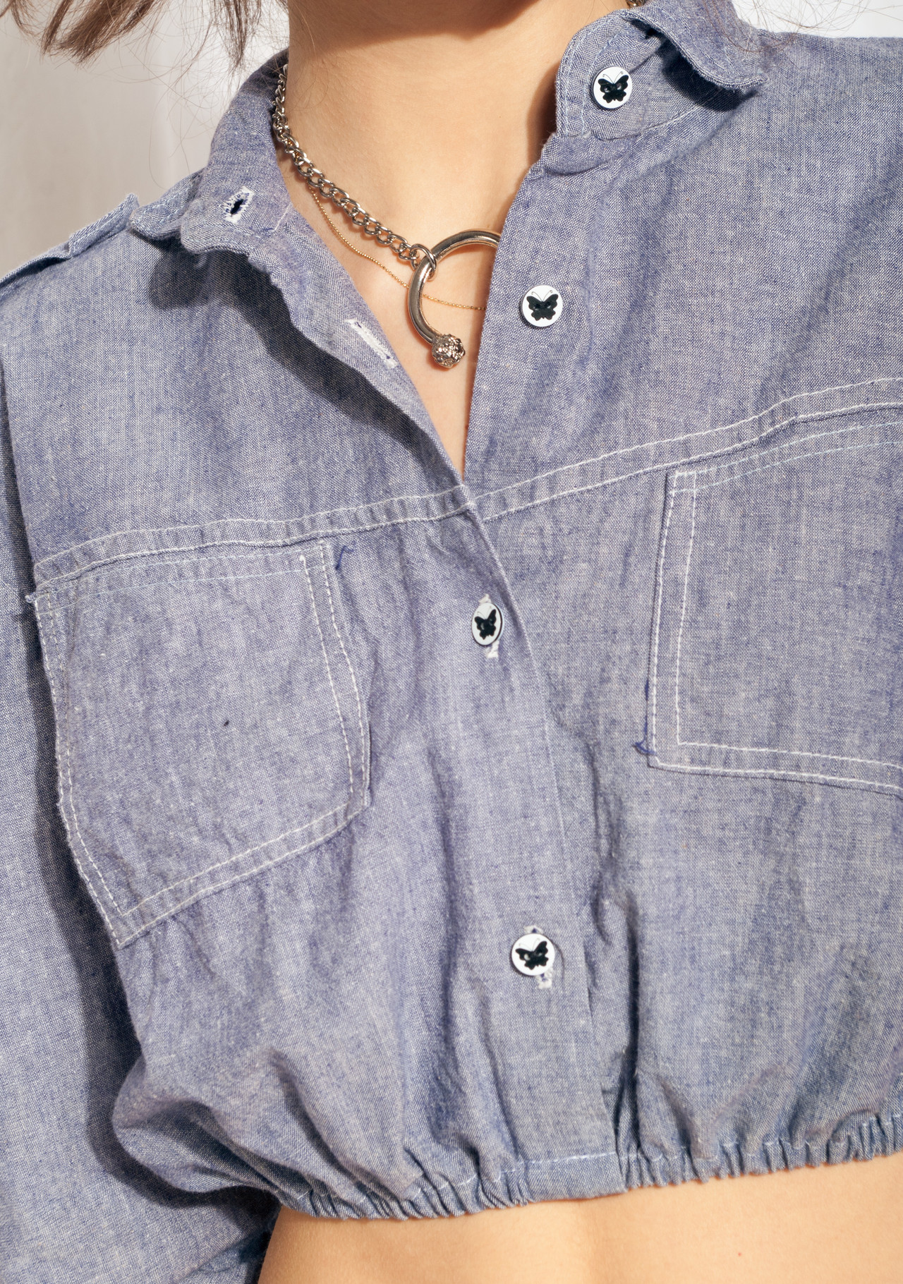 Reworked blouse from the magical 70s, a true vintage babe still in excellent condition. It’s a balloon sleeved beauty that was made in Hungary from pure cotton fabric. We cropped and finished its hem with a stretchy band and also replaced its ugly buttons with cute butterfly-patterned ones. Yep, it’s the true vintage aesthetic we offer here – don’t let it slip away!