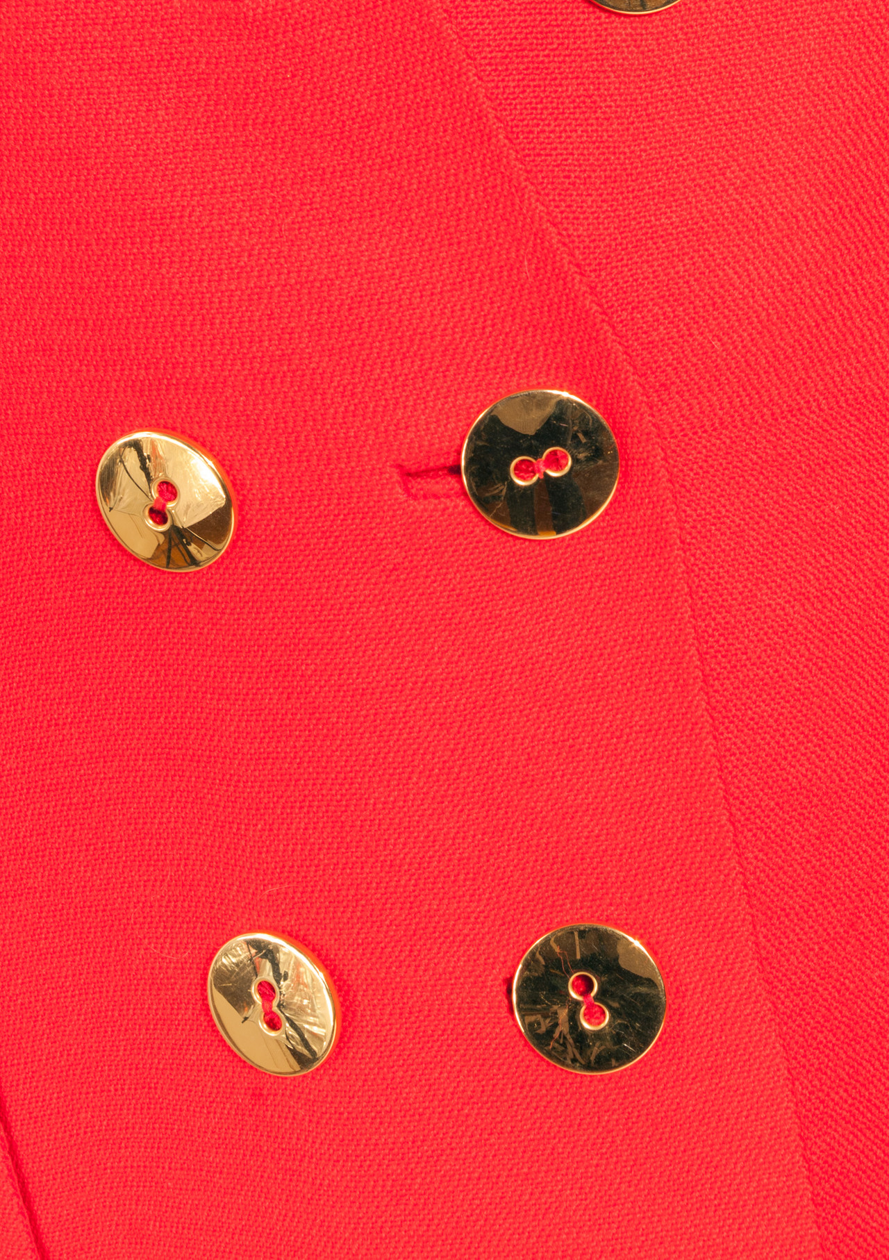 An insanely cool vintage winter coat in an orangish-red colour. It’s a fully lined piece made of thick red fabric with two big pockets and big golden buttons. This real 60s babe survived in flawless condition.