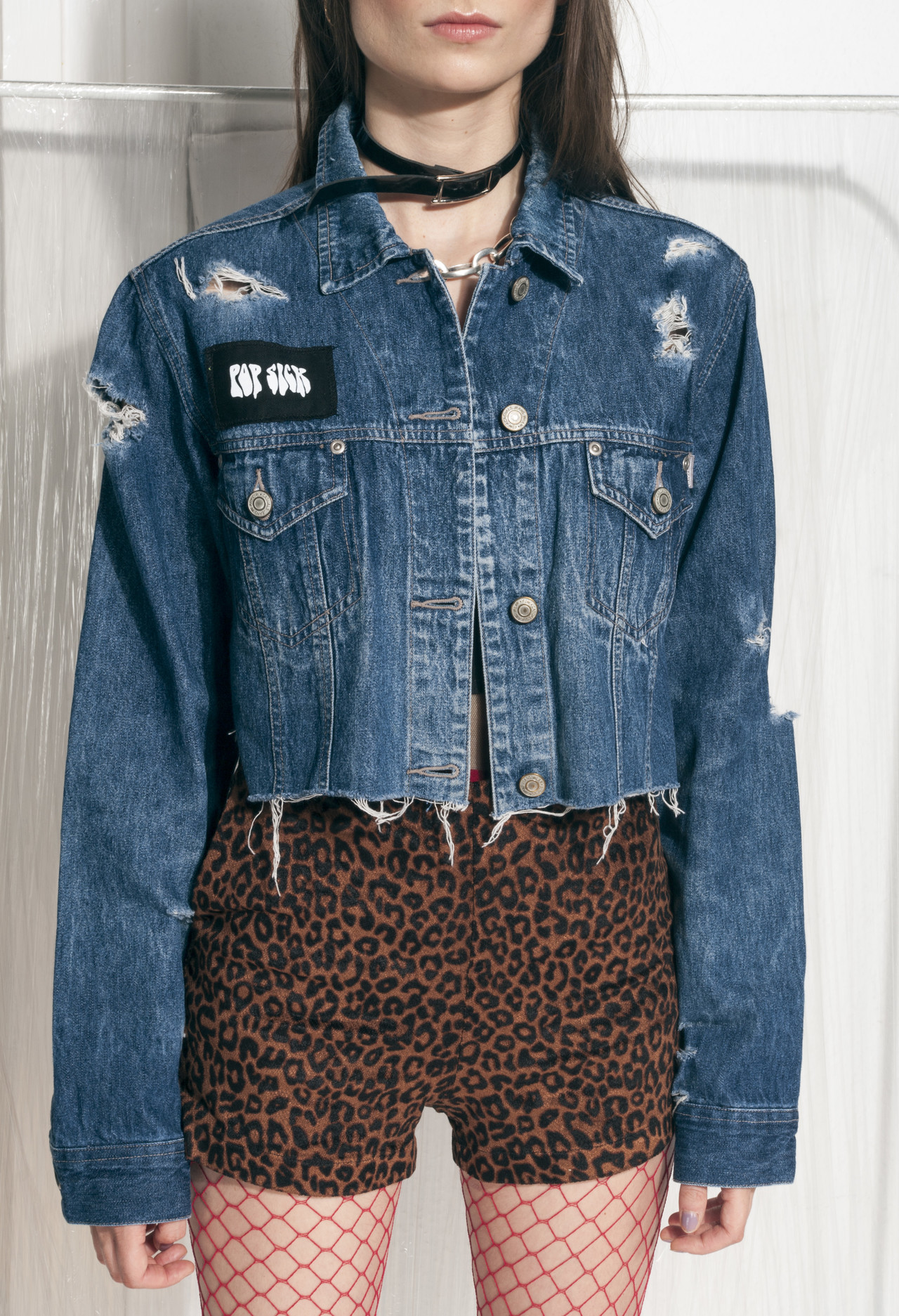 Pop Sick reworked denim jacket, originally from the 90s. We cropped and frayed it to get this one-off look and we also added a Pop Sick patch. It’s gonna make your whole outfit ultimately cool. Button closure, two pockets at front. Looks killer with high-waisted bottoms.