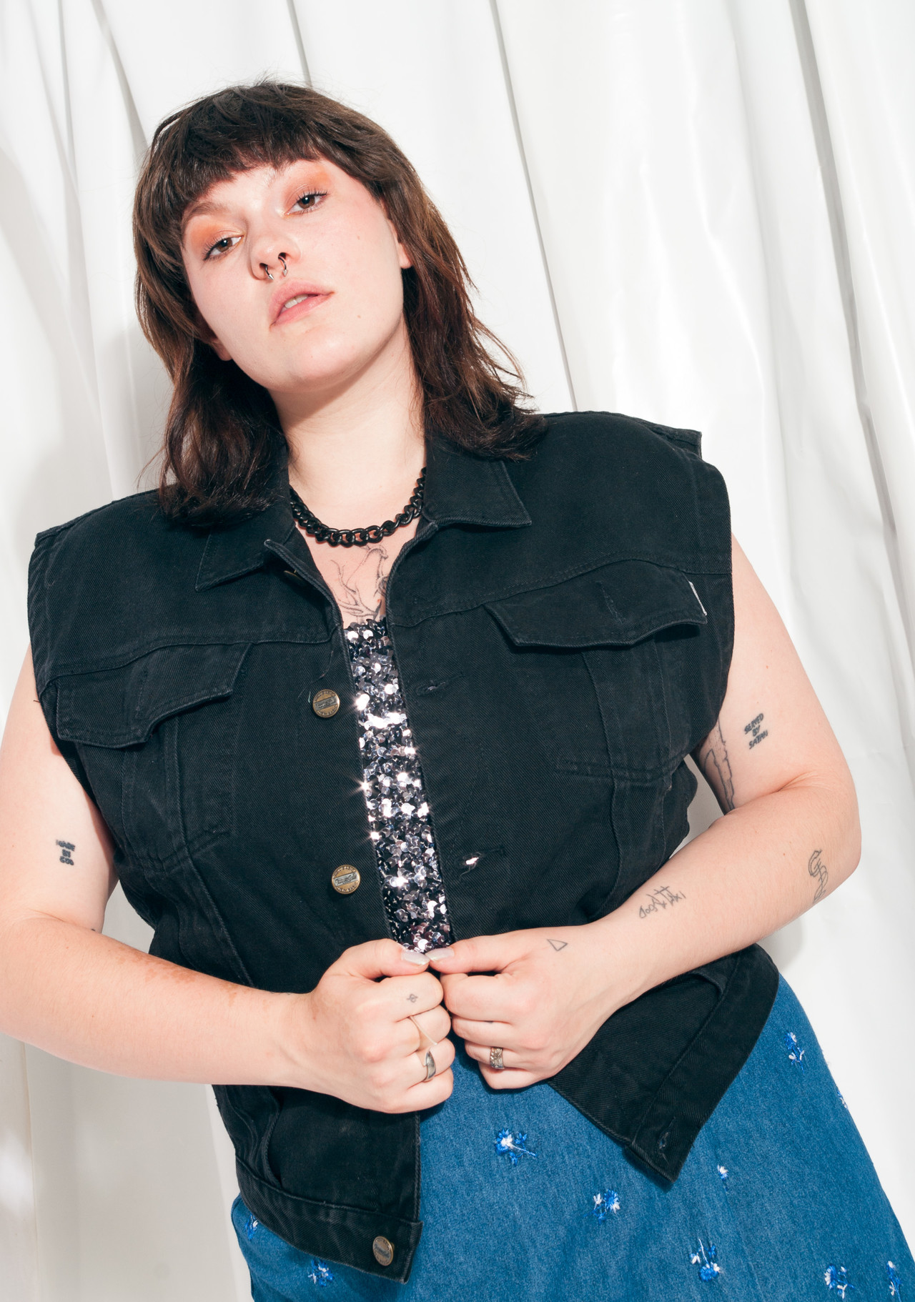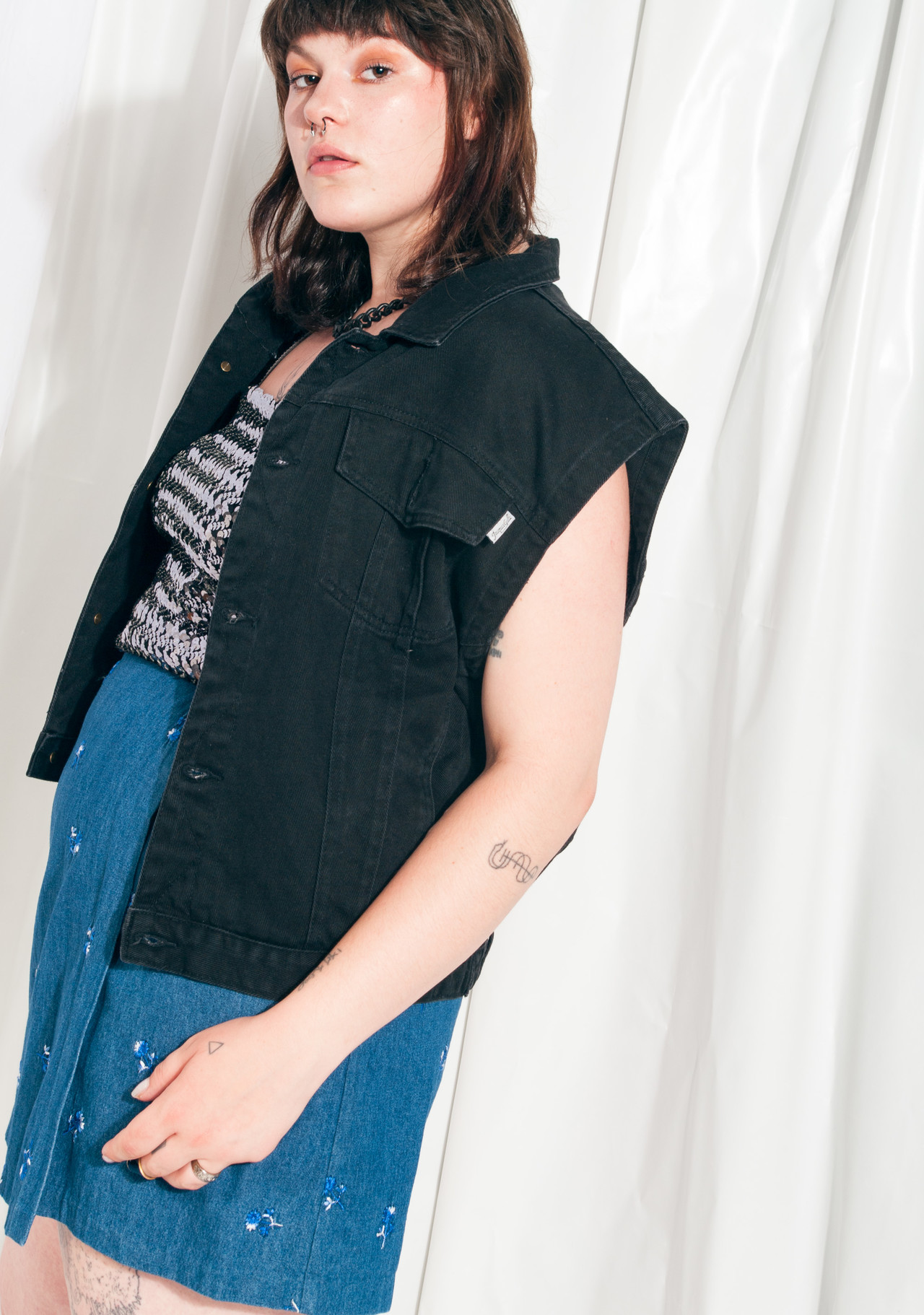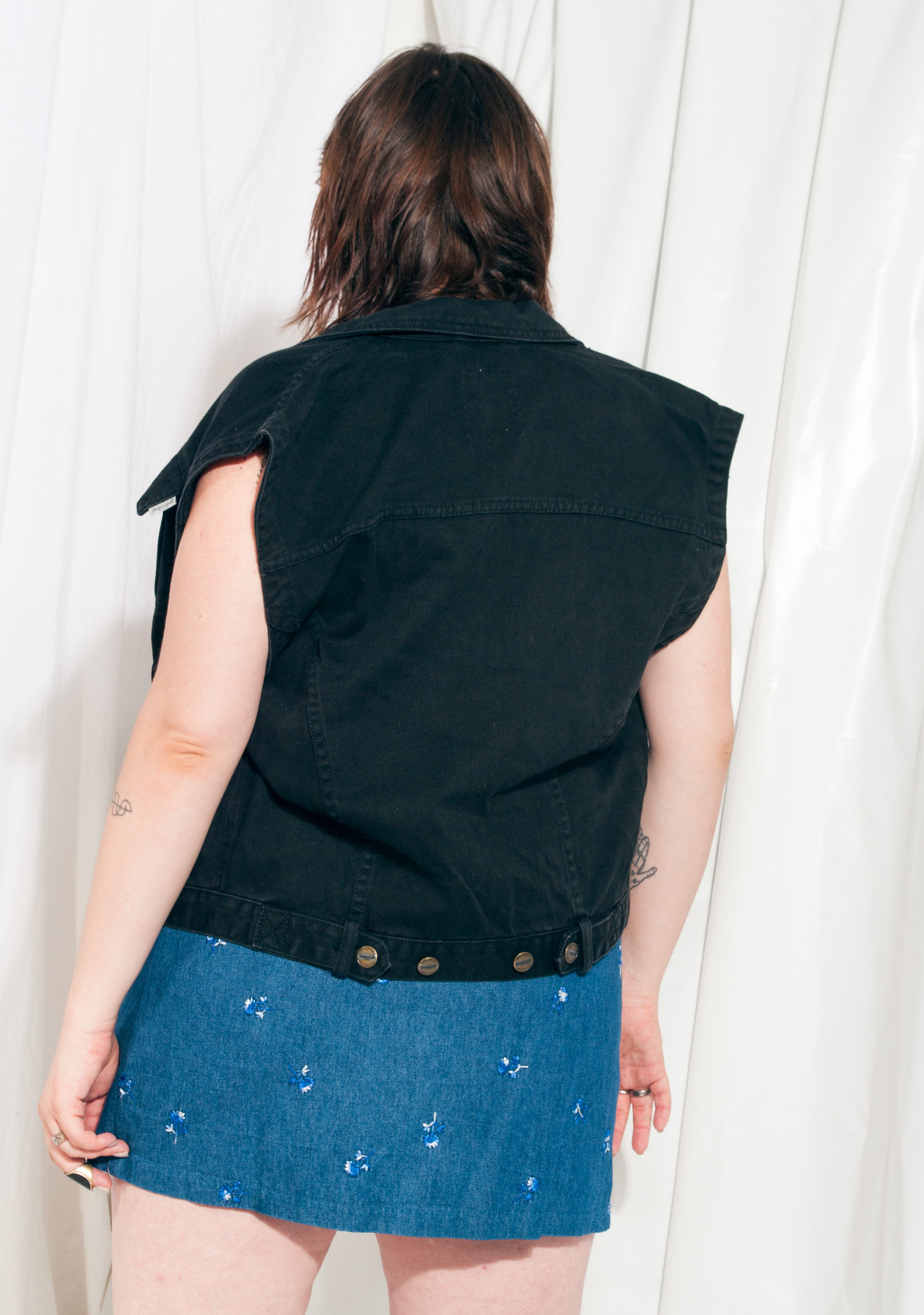 Vintage Denim Vest 90s Grunge Black Waistcoat Jacket