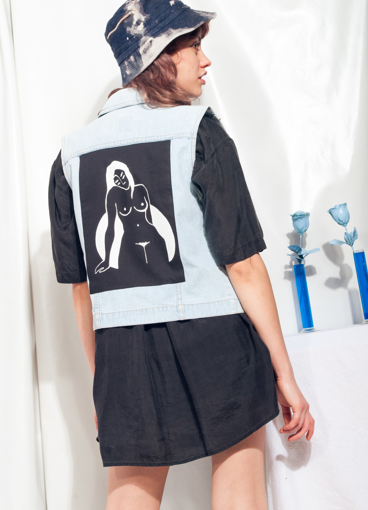 A rad denim vest straight from the early 90s with one of our hand-printed feminist patch sewn on its back. It’s featuring two fake pockets and a button closure. This babe fits more sizes depending on the desired look.