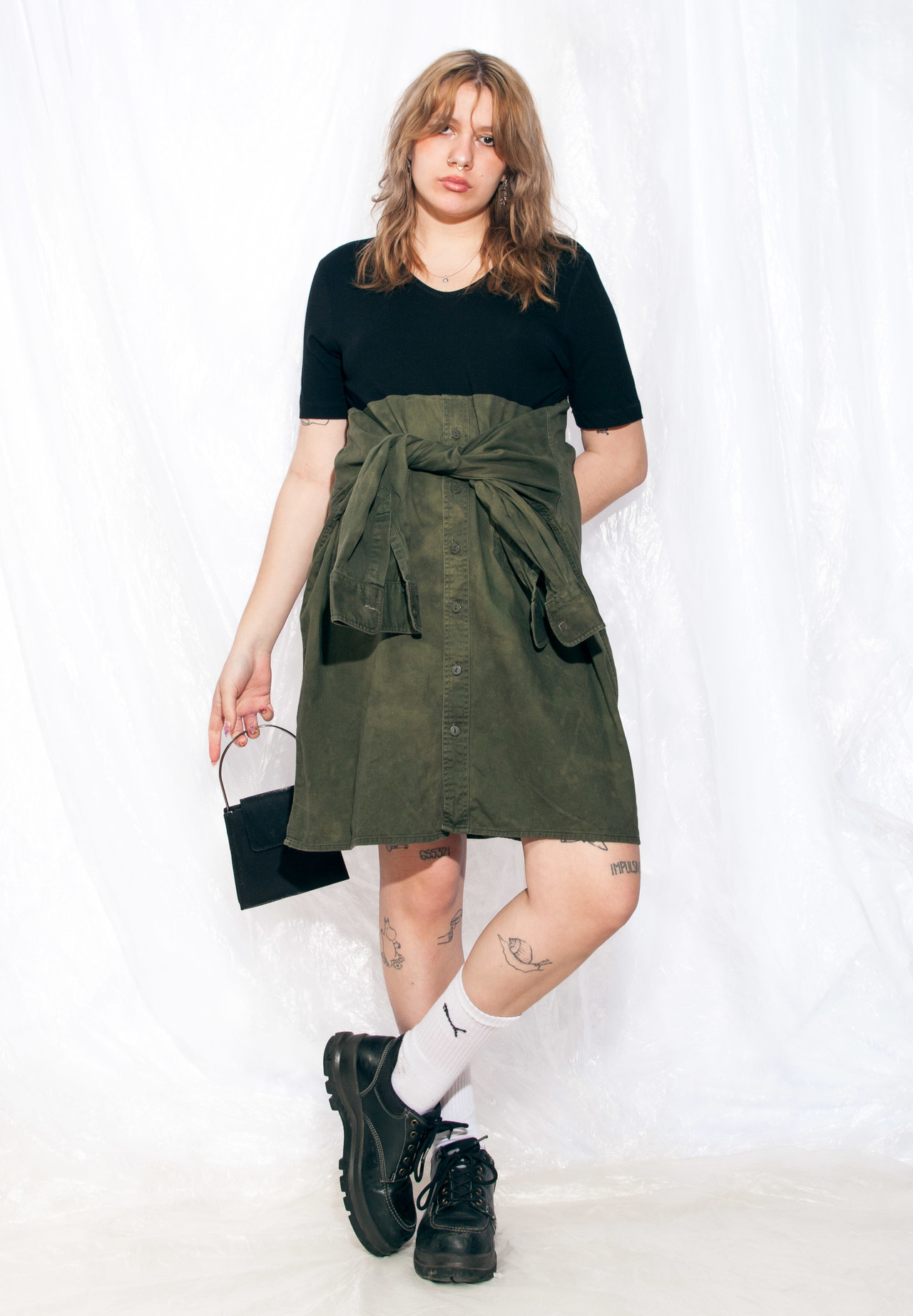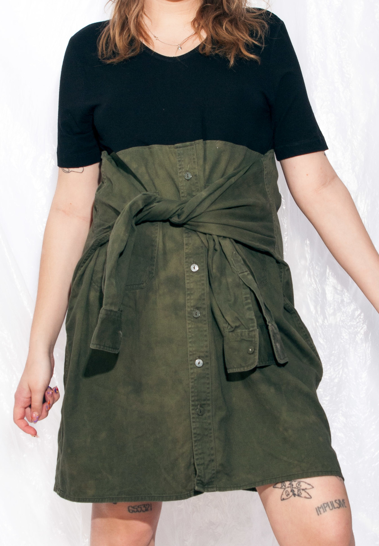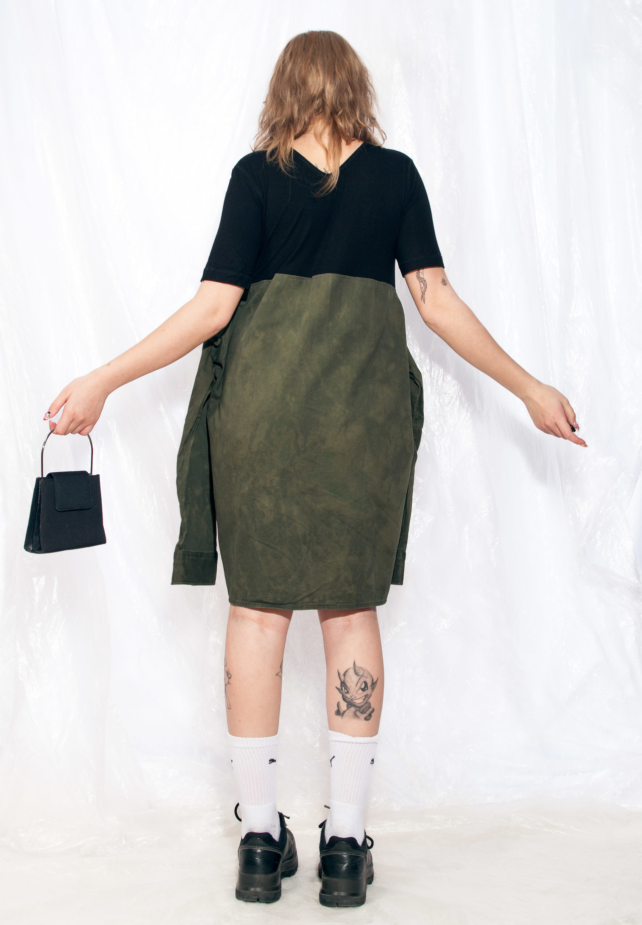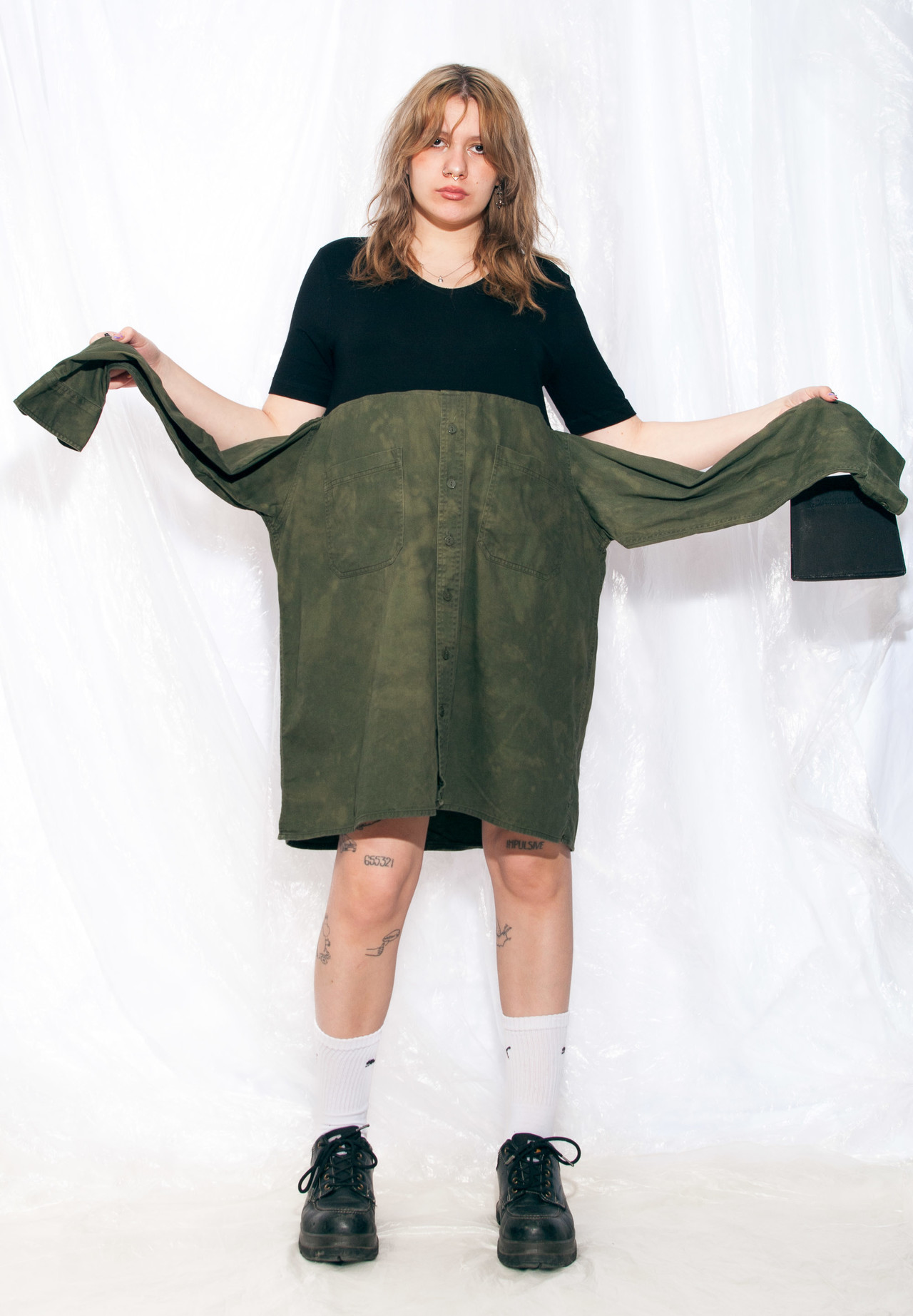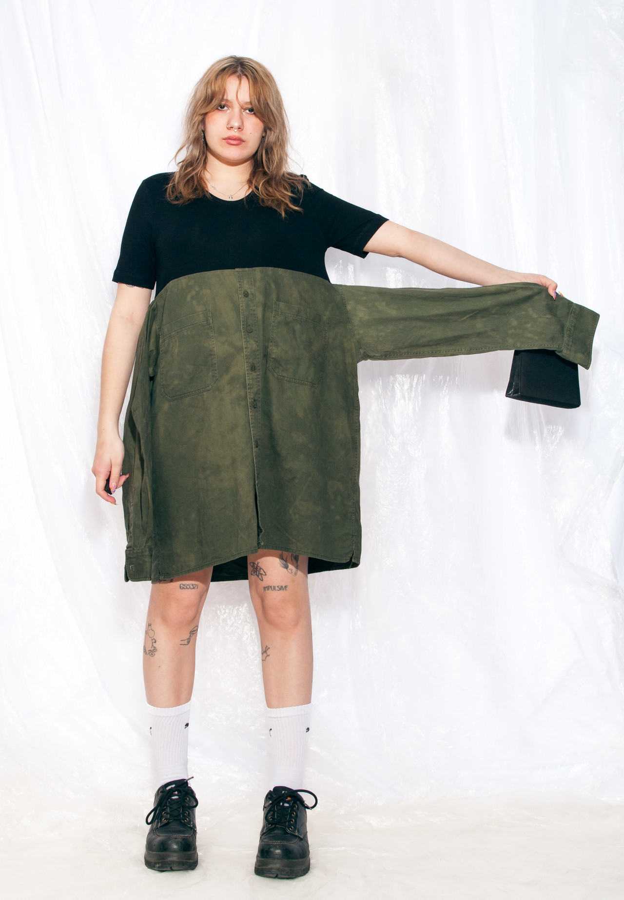 Pop Sick reworked dress made from a black tee and a military green tie-dyed shirt. It has four arms, so it’s great for having some super fun time with your bae. Made from natural cotton fabric, this sustainable fashion gem’s gonna be your comfiest piece of clothing. Grab it or regret it!
