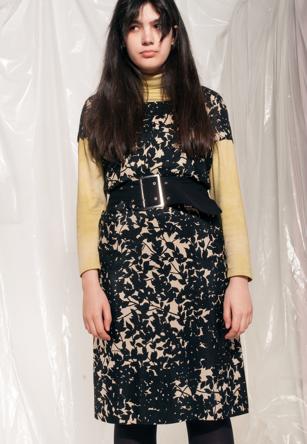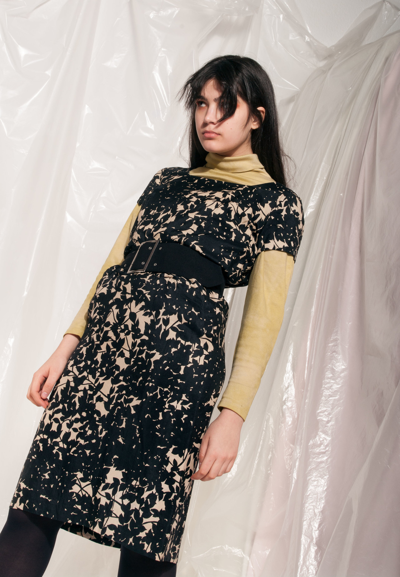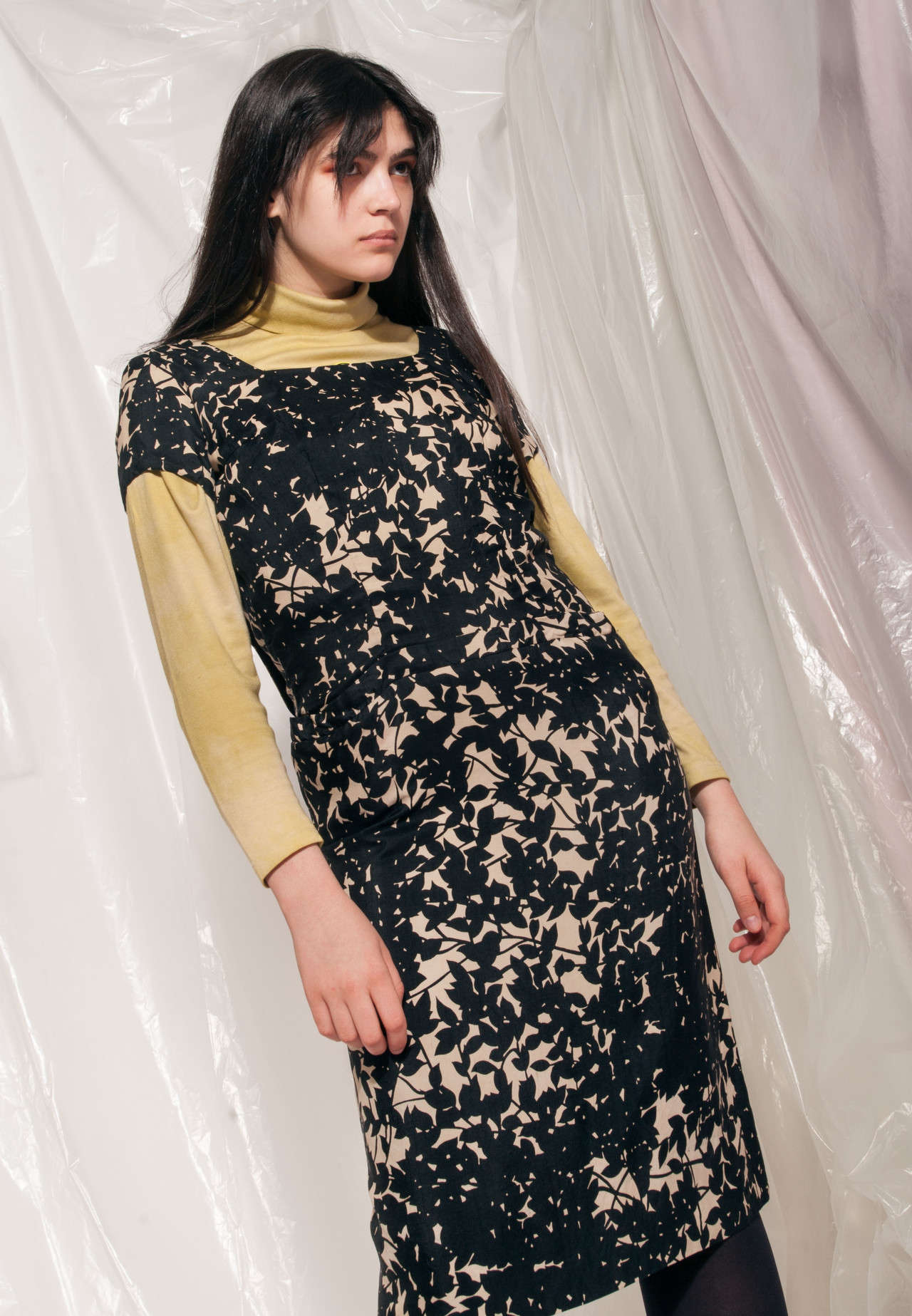 Vintage tulip dress 90s cute midi dress black flower print