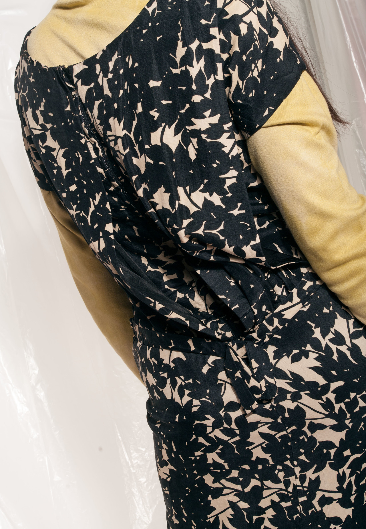 Stunning one-off evening dress from the 50s that just got through our company time tunnel in flawless vintage condition. Featuring a zip and hook closure, floral printed silk fabric and two tiny pockets at the waist. Fully lined.