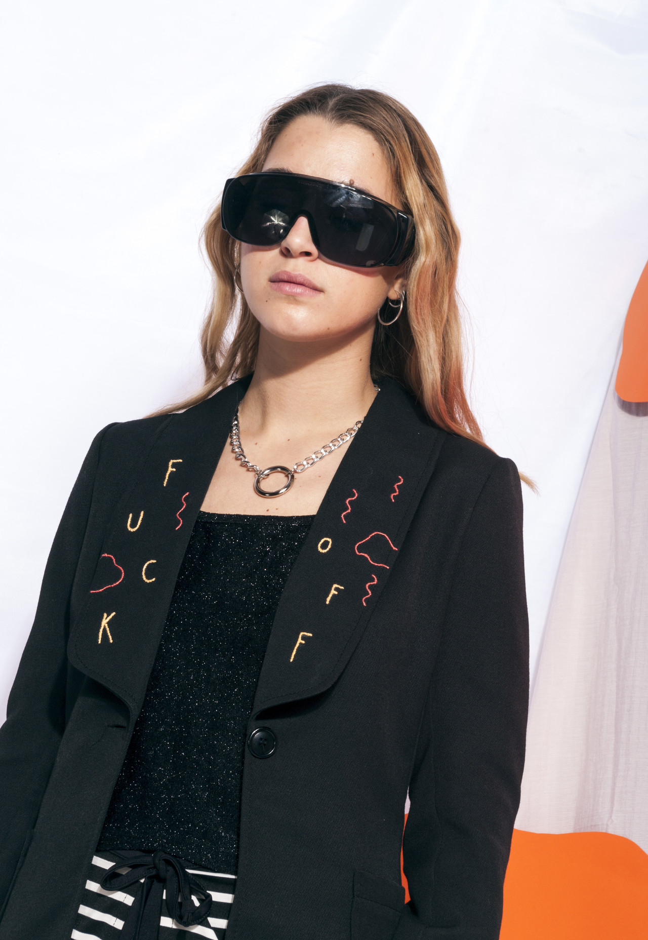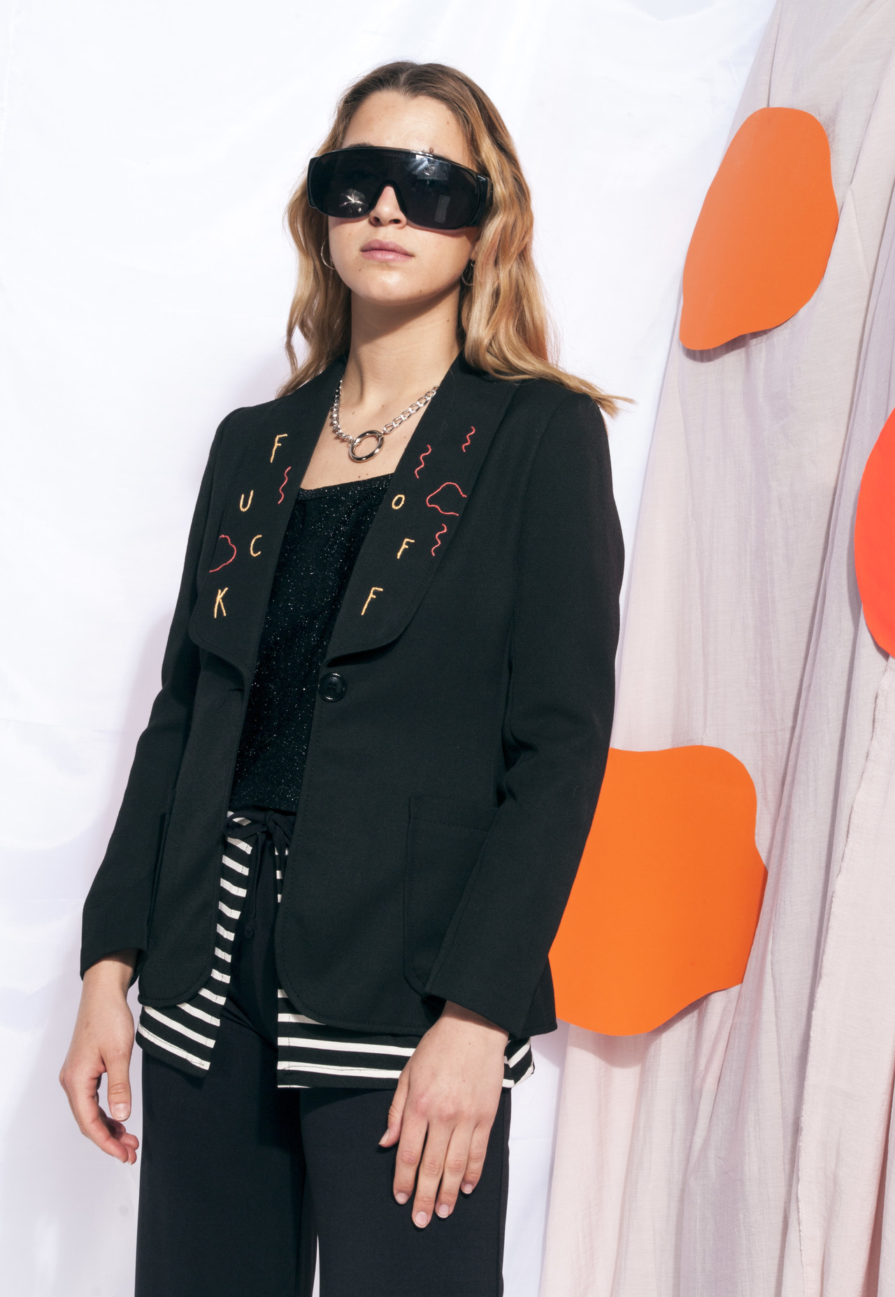 Vintage jacket 70s reworked Fuck Off embroidery handmade black blazer