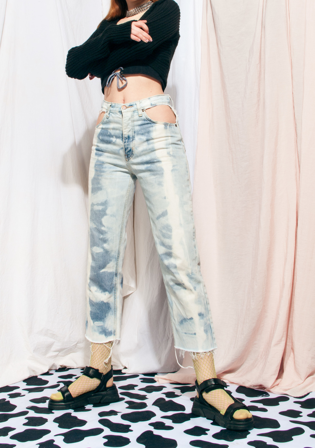 Vintage Jeans 90s Rework Cut-out Pocket Tie-dye Denim Pants
