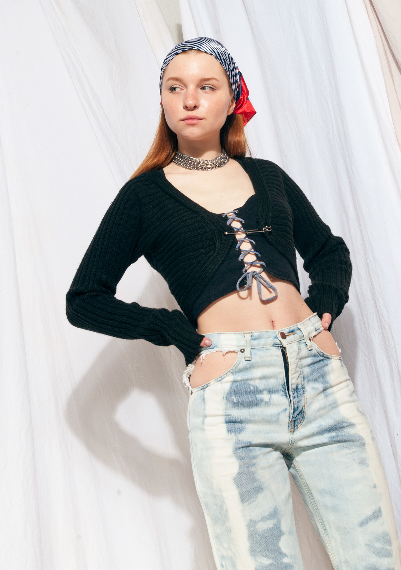Reworked Wrangler jeans 90s vintage grunge cut-out denim