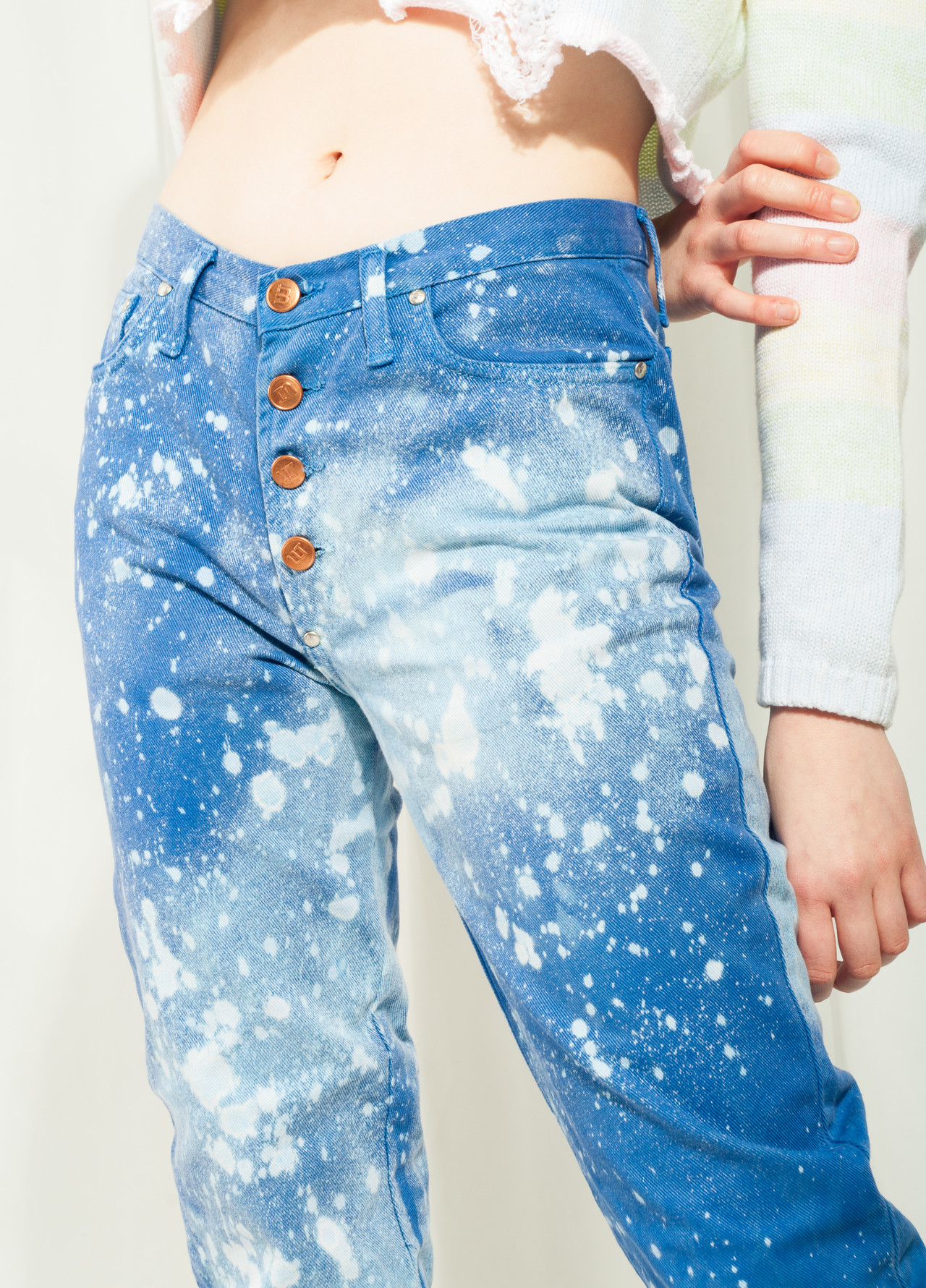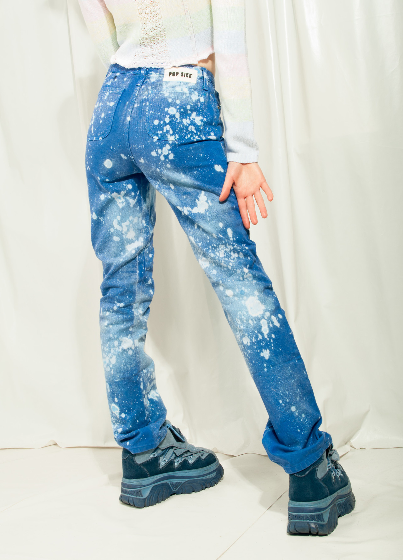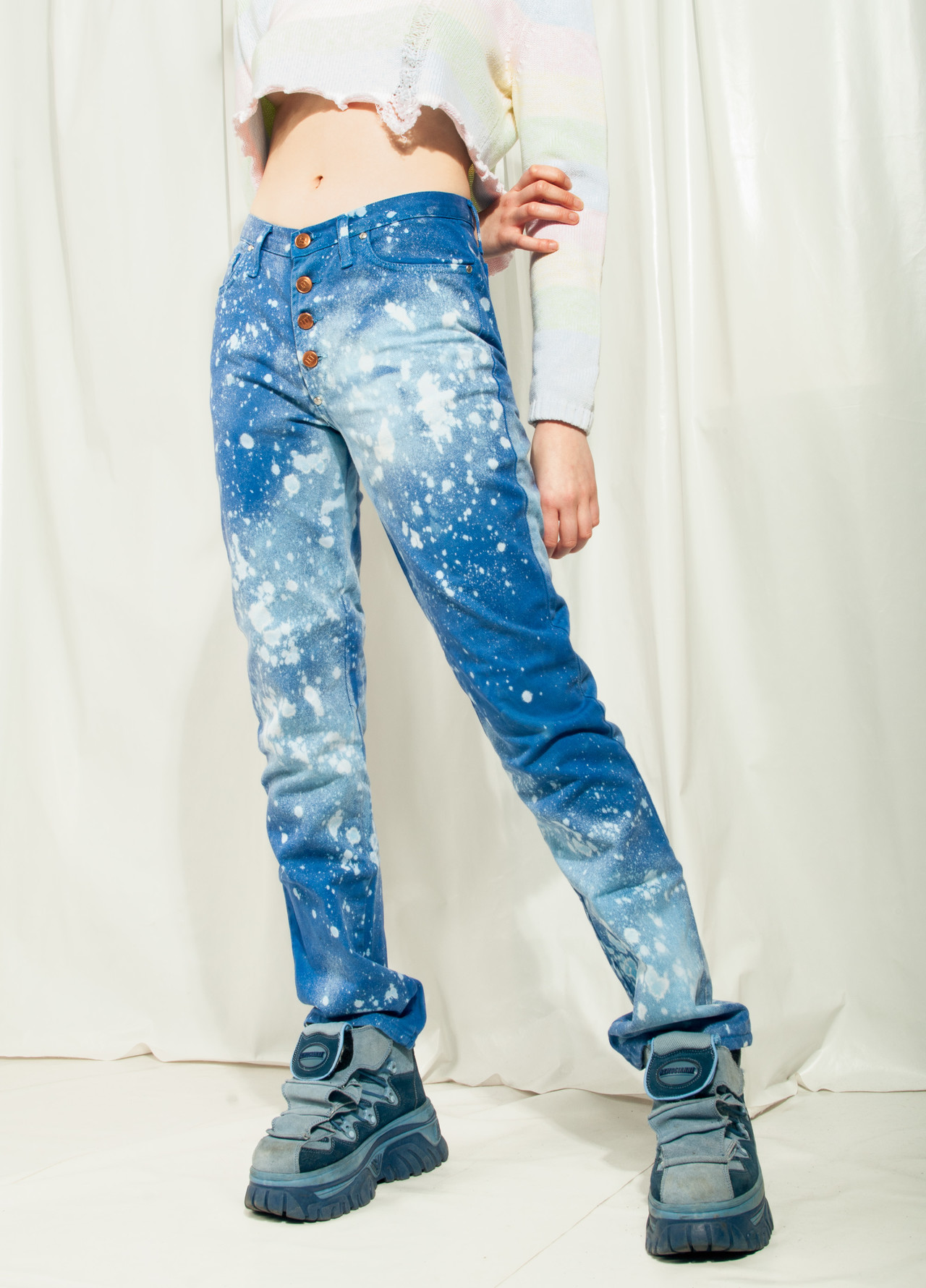 Reworked deadstock vintage jeans from the 2000s that we bleach-dyed to get this rad pattern. Made in Italy from pure cotton fabric, this babe with its five-pocket styling and button closure is an absolute staple. Did you know that the only type of sustainable fashion is vintage fashion?