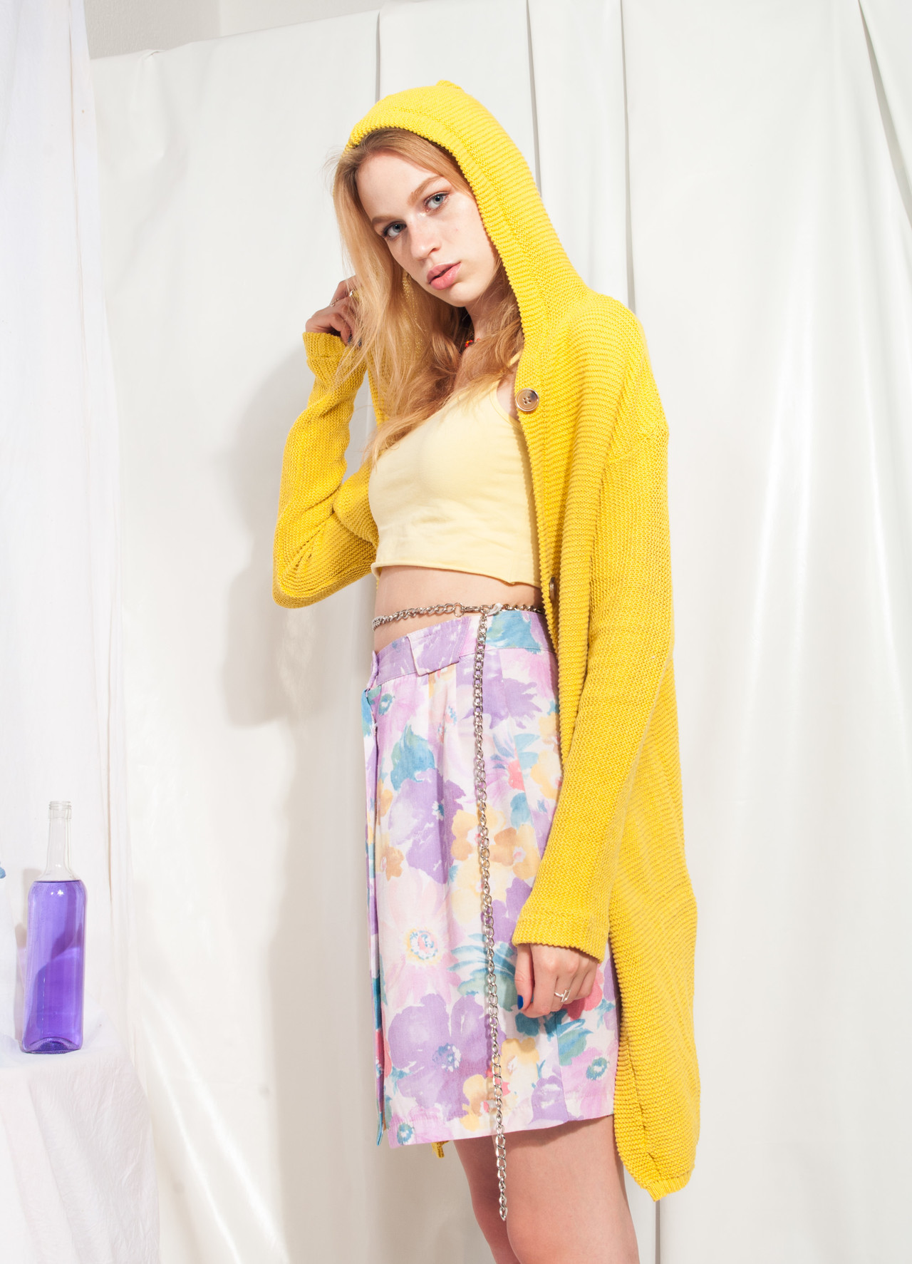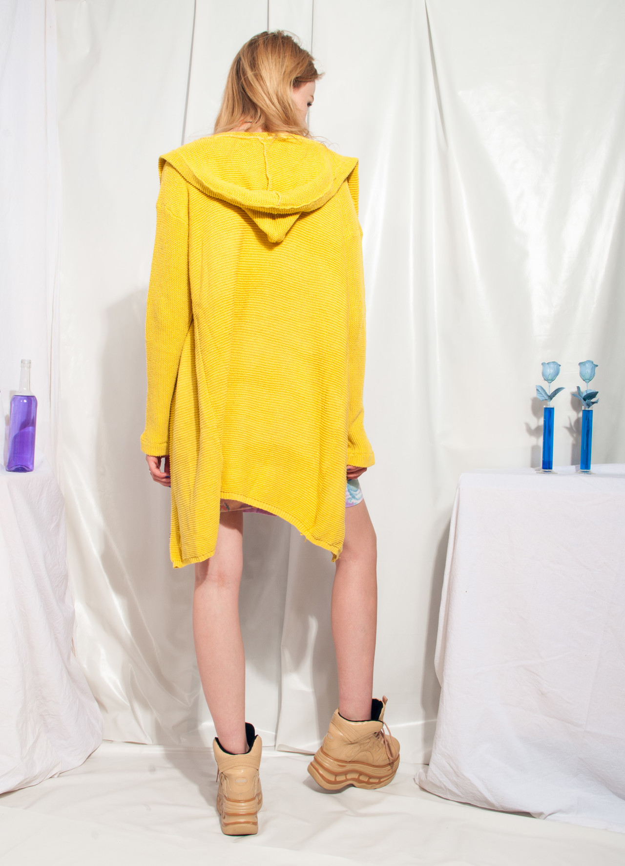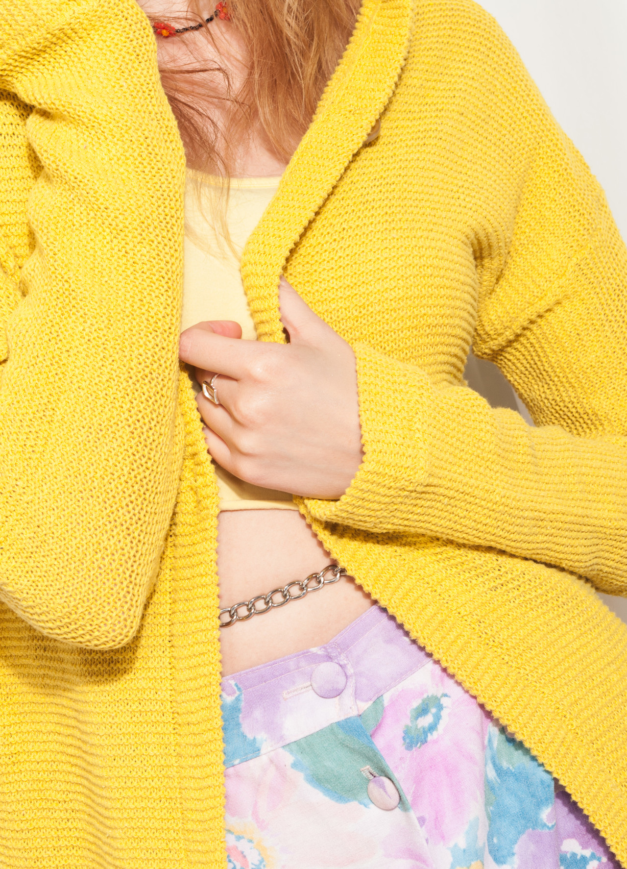Insane vintage knit cardigan, a Y2K masterpiece still in good condition. It’s made of yellow fabric and comes with a hood and button closure. Save the planet & ditch fast-fashion once and for all!