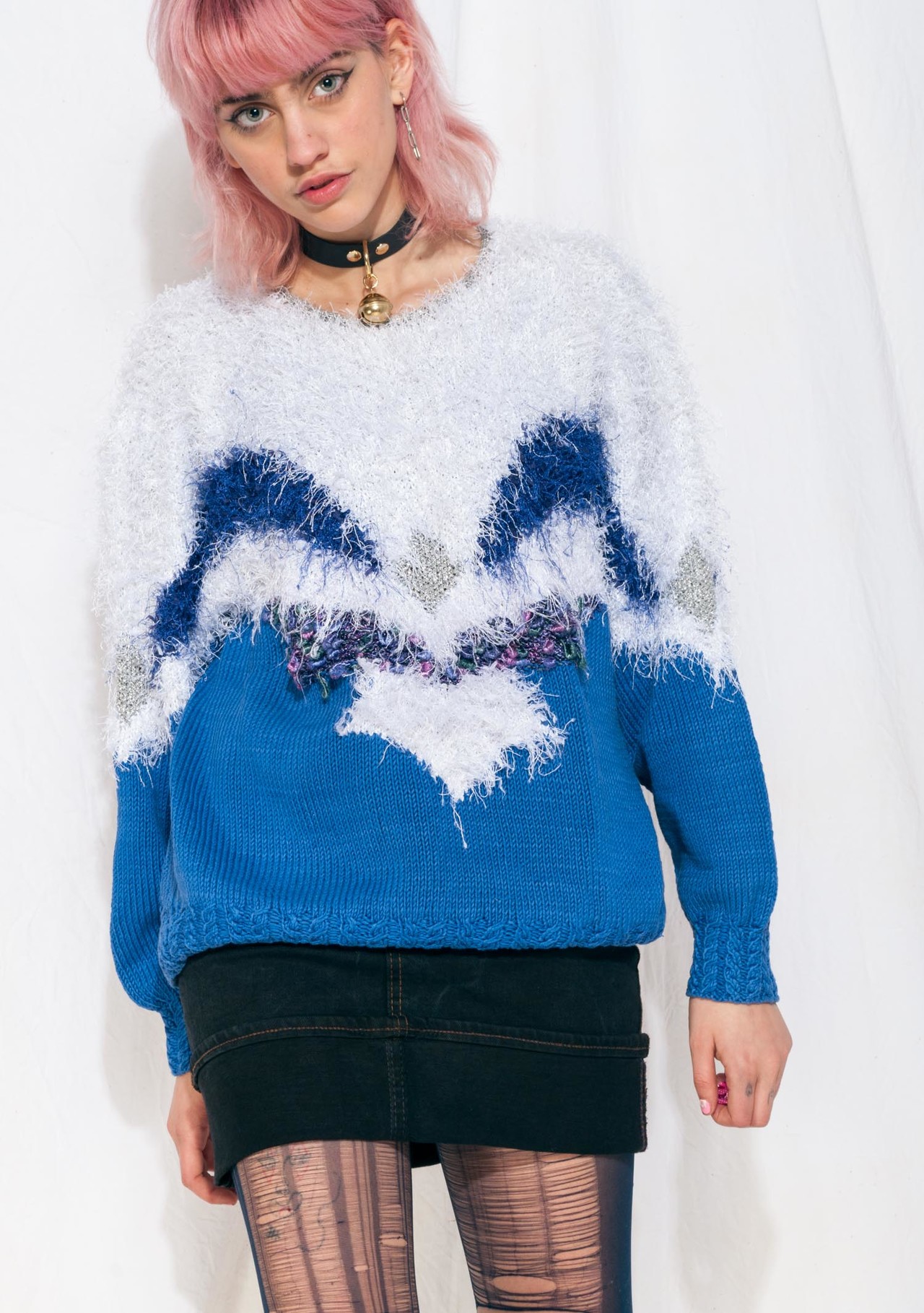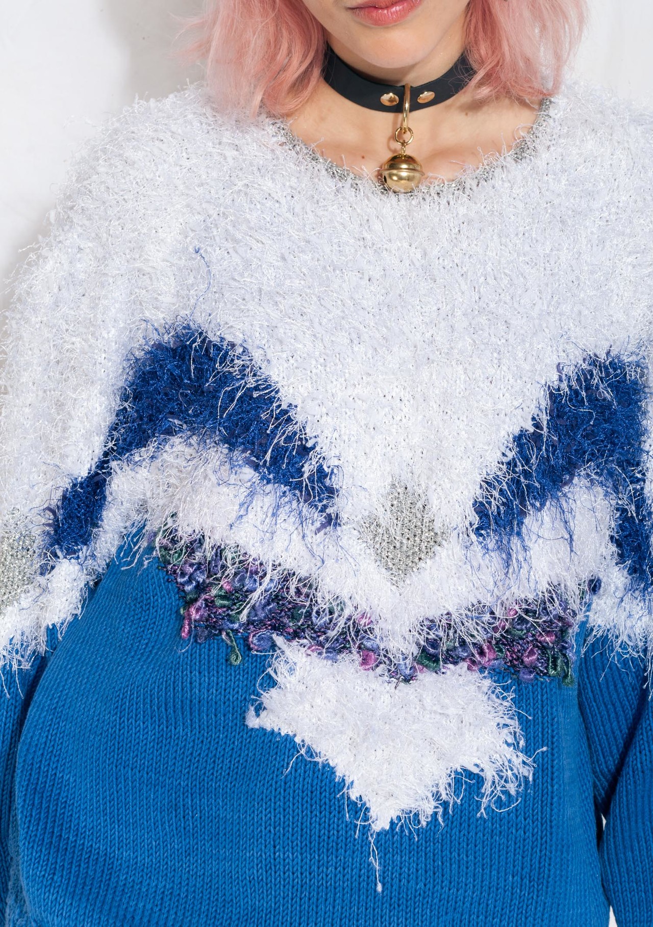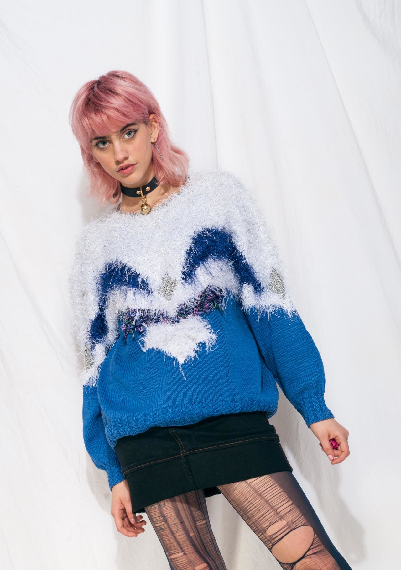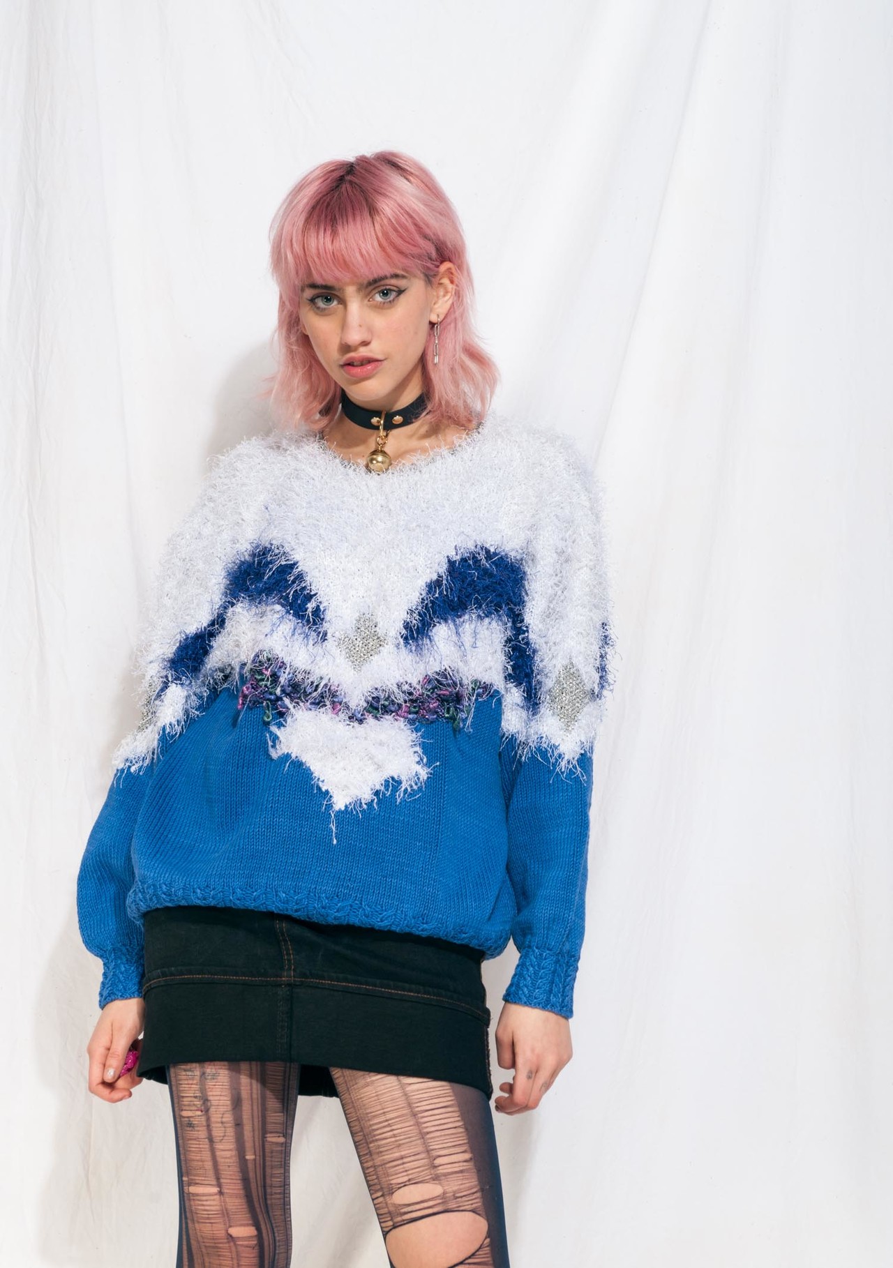 Vintage knit jumper 80s fluffy weird ugly Xmas sweater