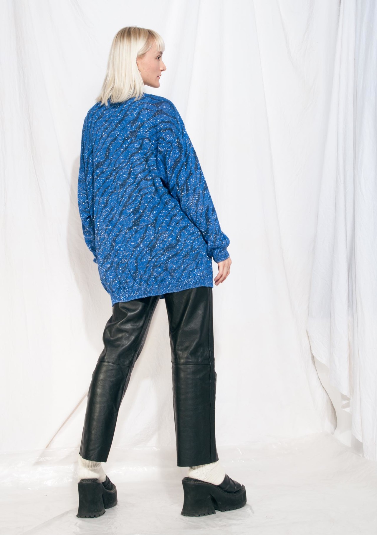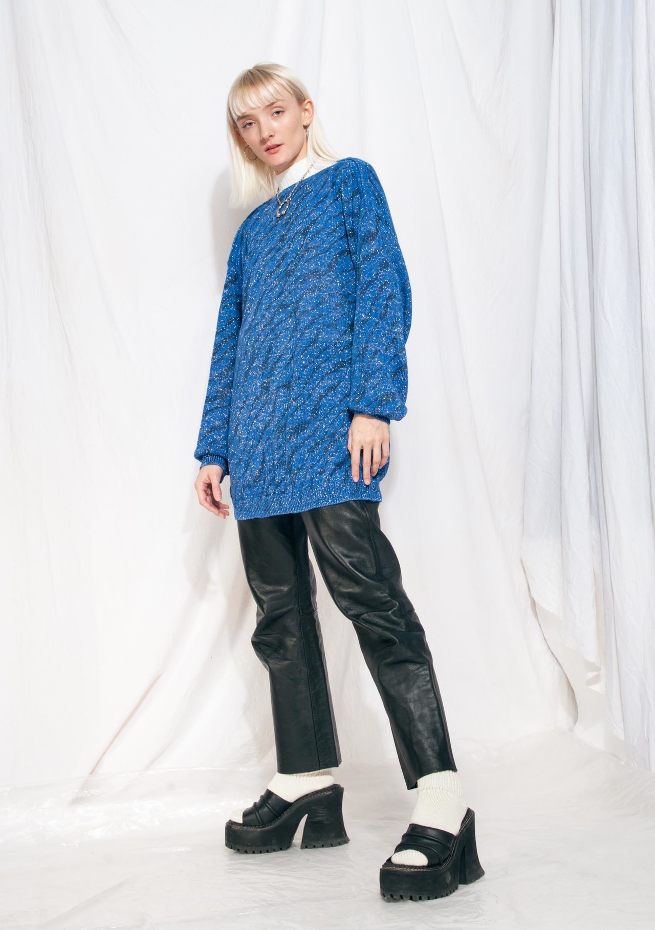 Vintage knit jumper 80s shiny blue long chunky sweater