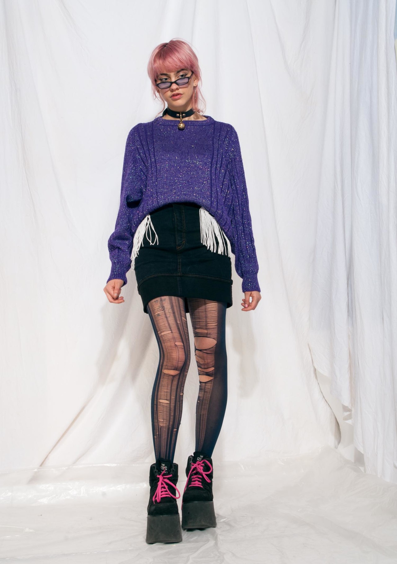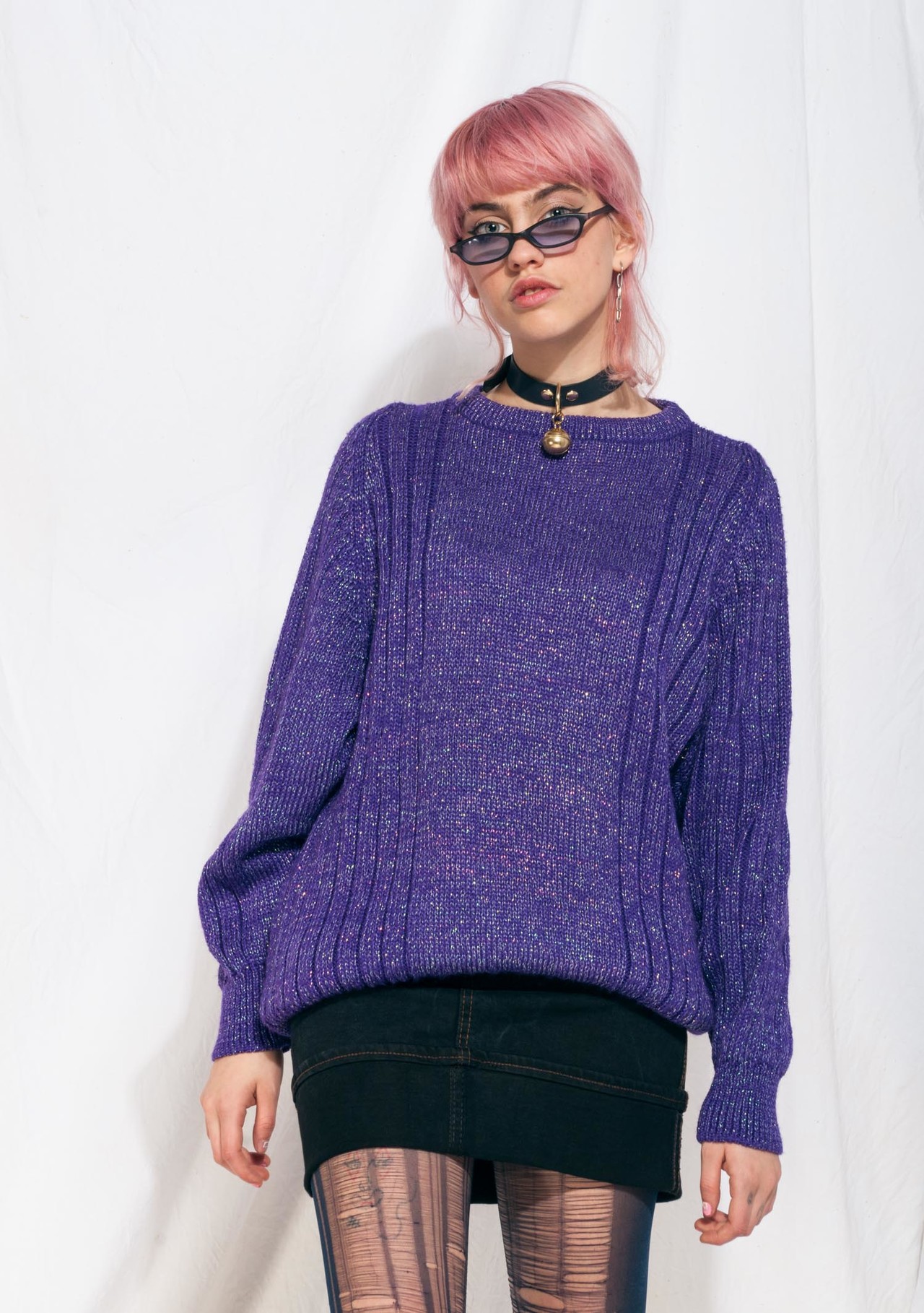 Vintage knit jumper 90s long purple metallic sweater