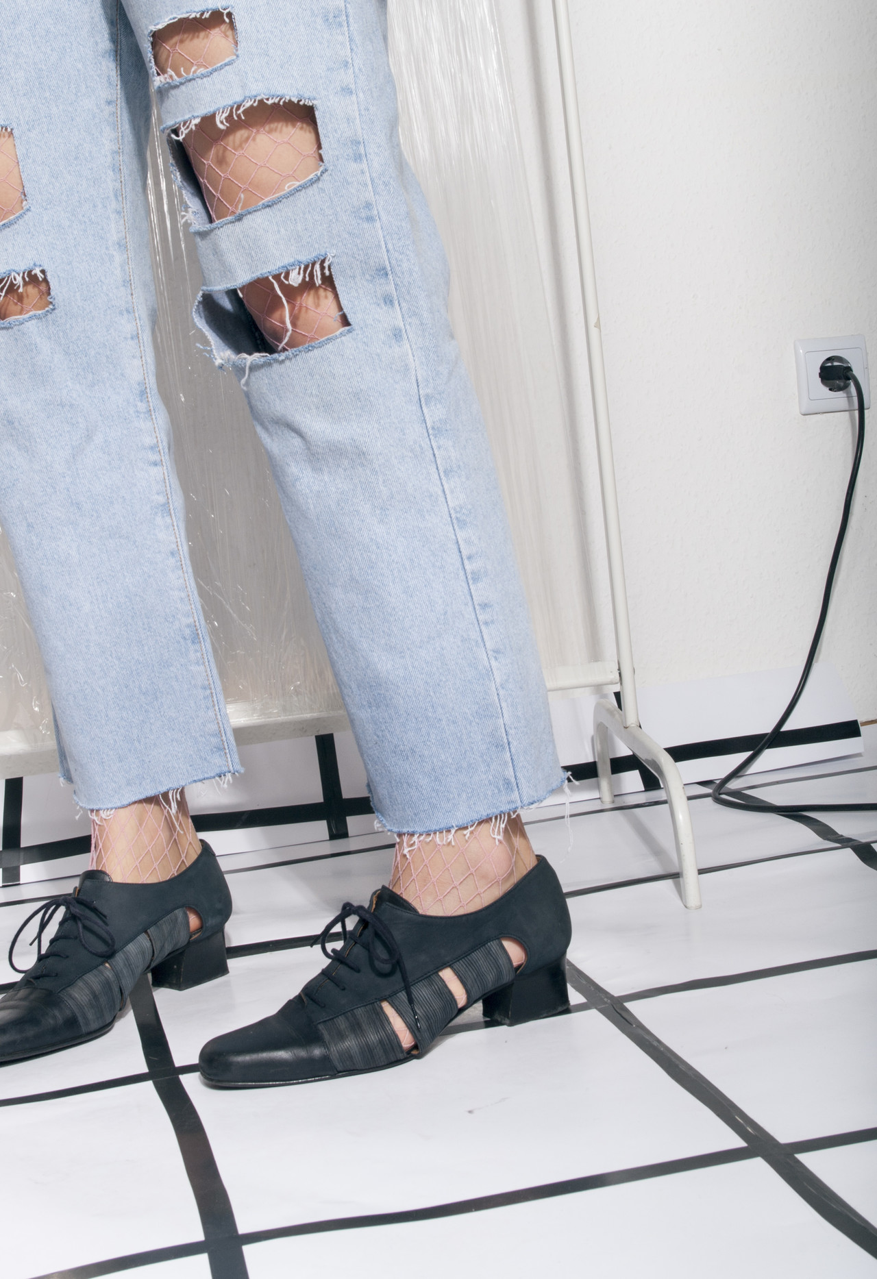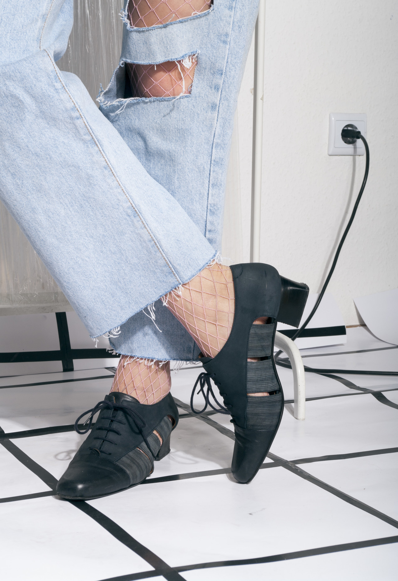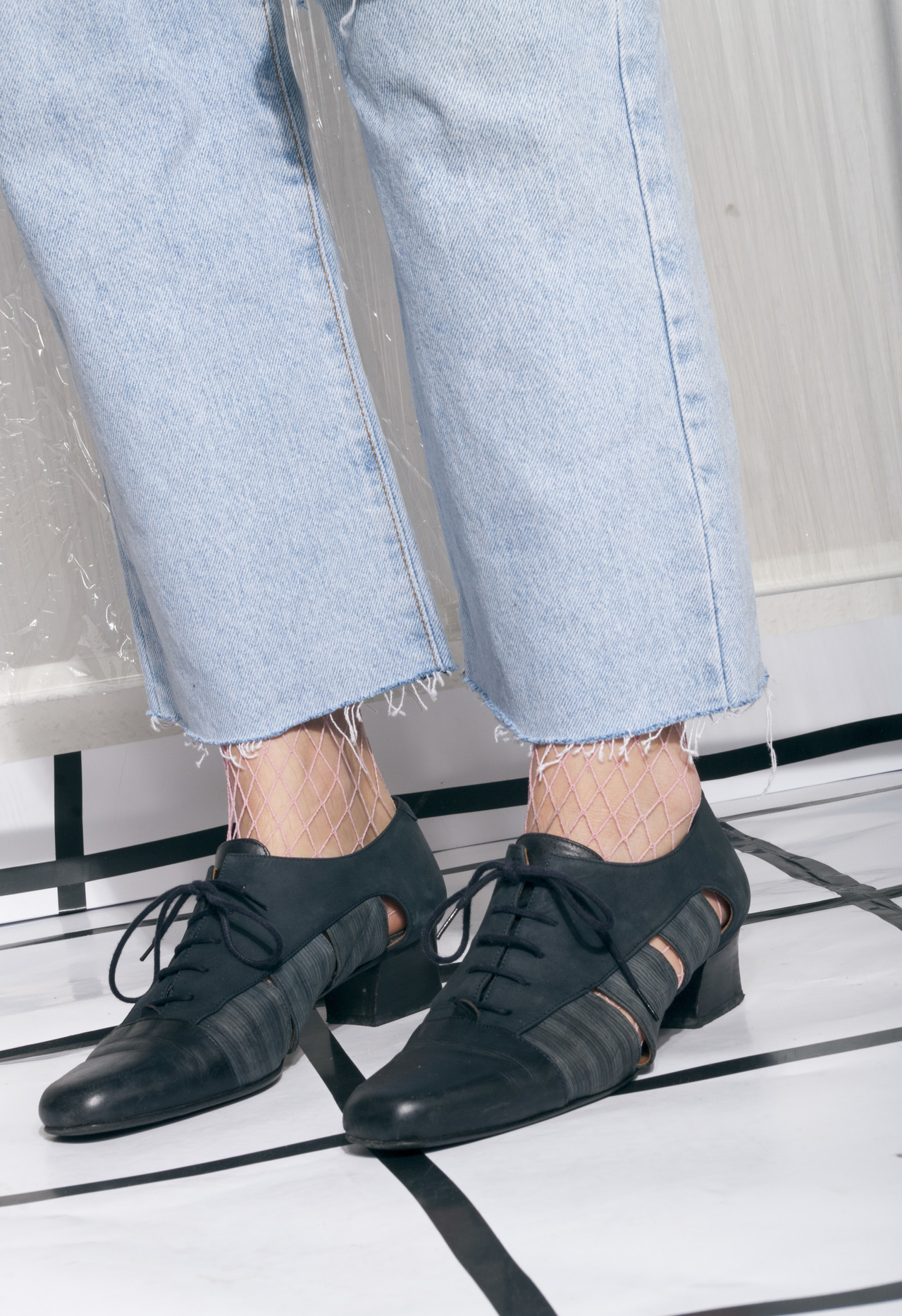Vintage leather shoes 80s cut-out real suede blue heels