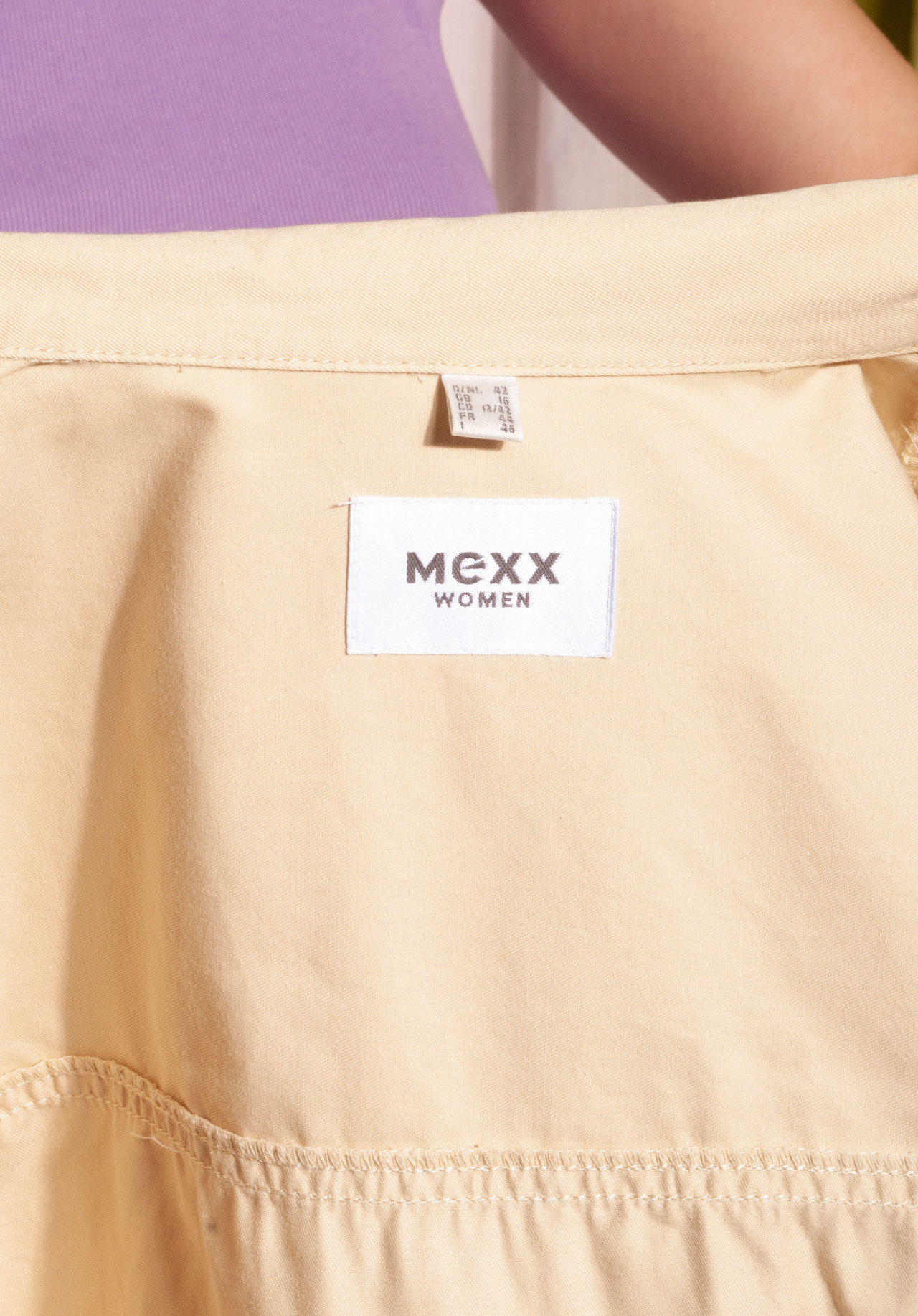 Mexx jacket from the sunshiny 2000s, a true vintage babe still in mint condition. It rocks beige cotton fabric, 2 pockets and button closure. It fits more sizes depending on the desired look, so please check the exact measurements!