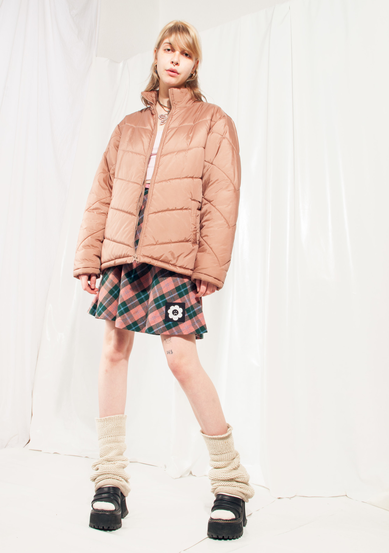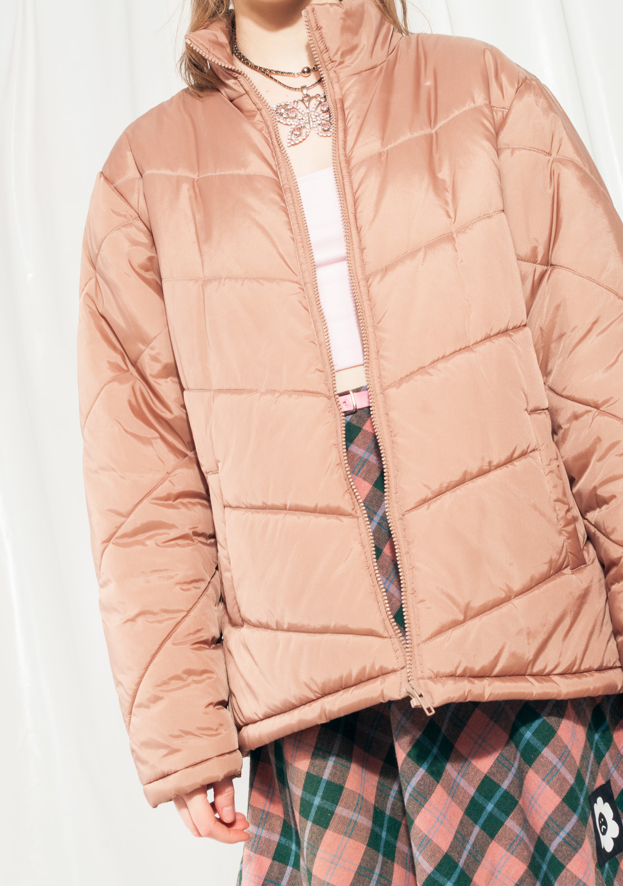 Vintage Puffer Jacket Y2K Puffed Coat in Brown