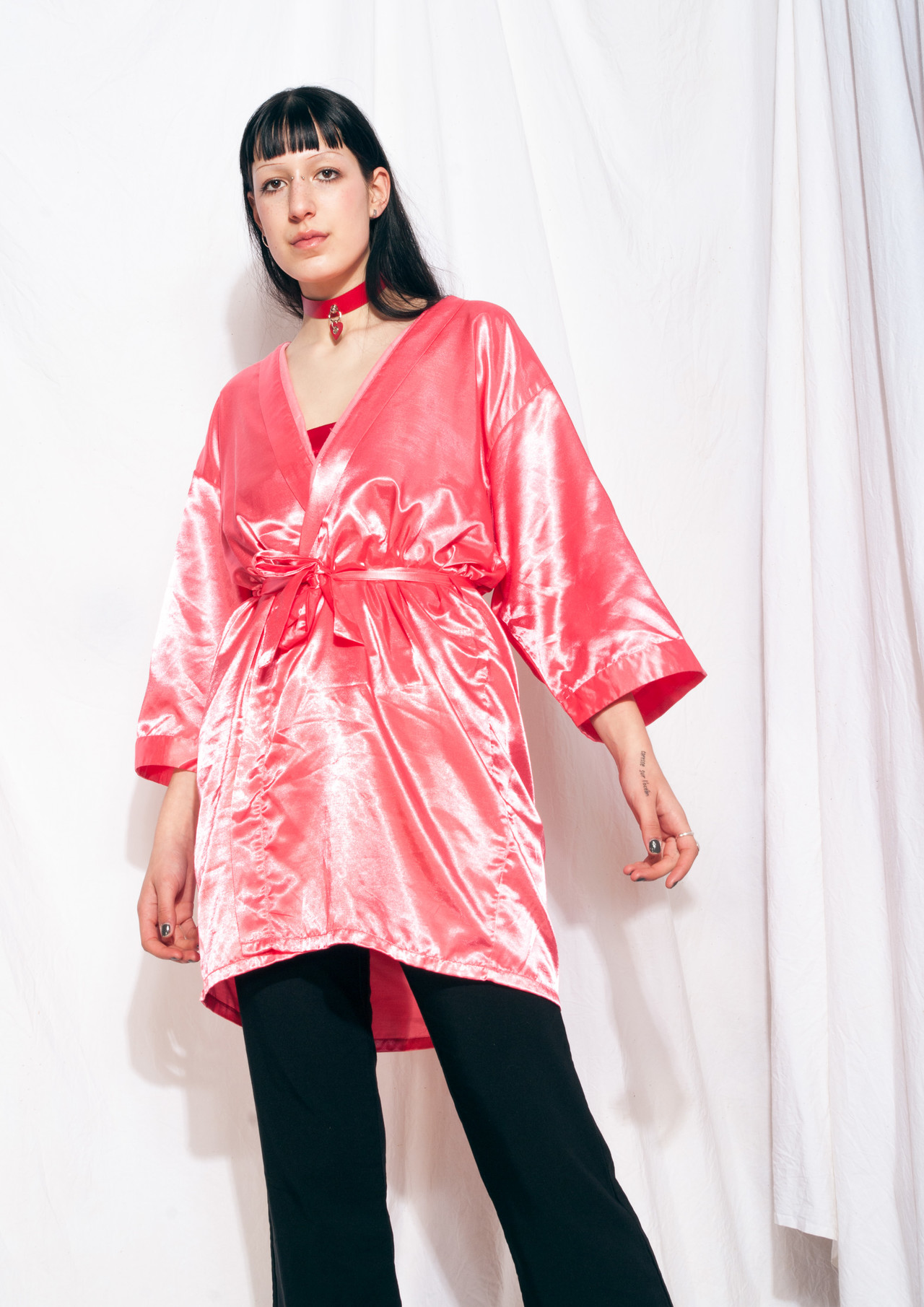 Be the first to review “Vintage Robe Y2K Pink Satin Oversized Kimono Coat” Cancel reply
