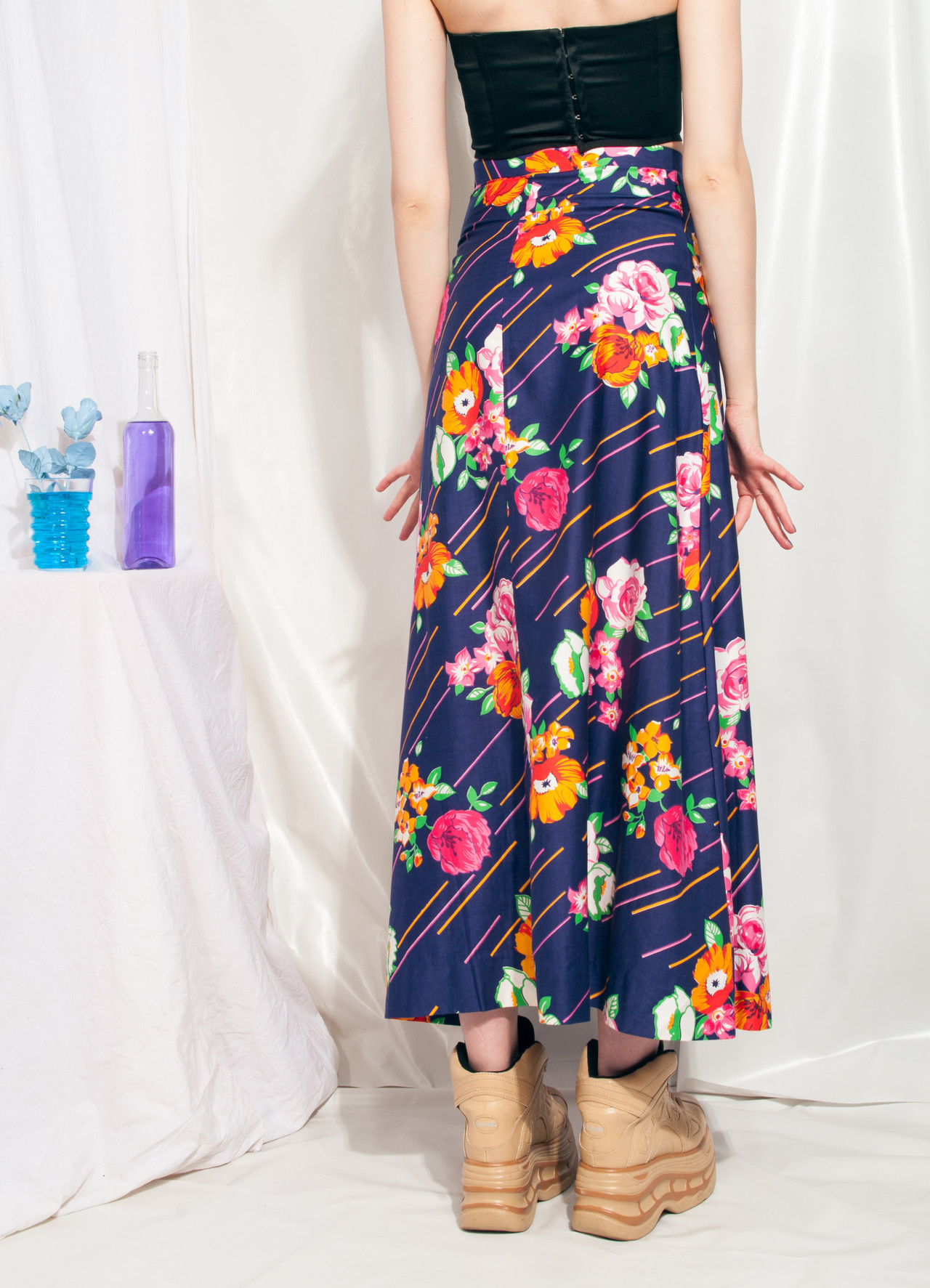 Vintage Skirt 70s Floral Hippie High Waist Maxi Skirt
