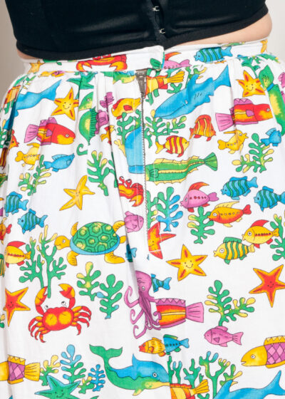 Vintage Skirt 80s Sealife Fish Printed Cotton Midi