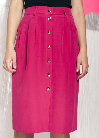 Vintage pencil skirt 90s button front magenta midi skirt