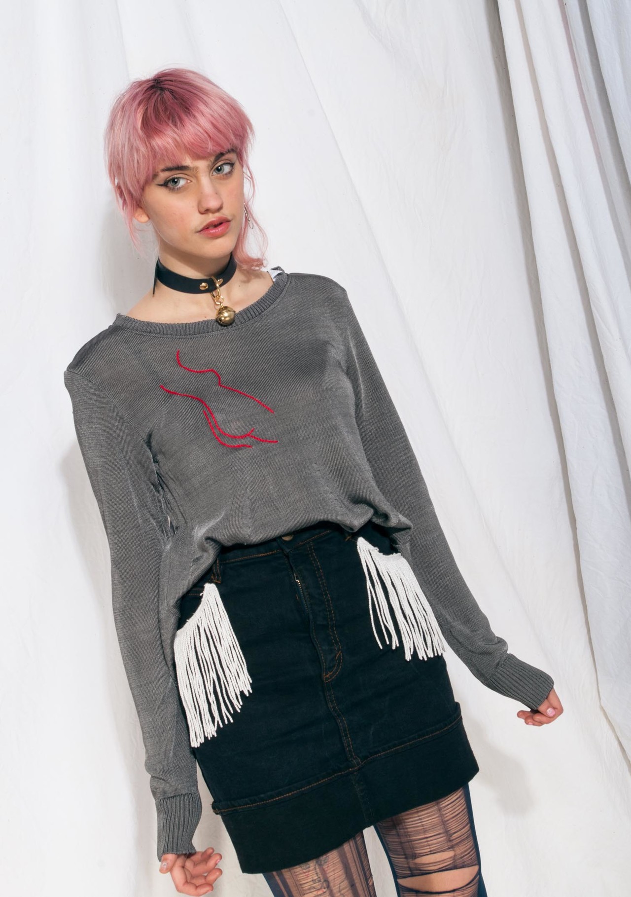 This silvery grey knit jumper escaped from the early 90s in flawless vintage condition. We gave it a feminist twist with the hand-embroidered pattern. Fits more sizes, please check the exact measurements!