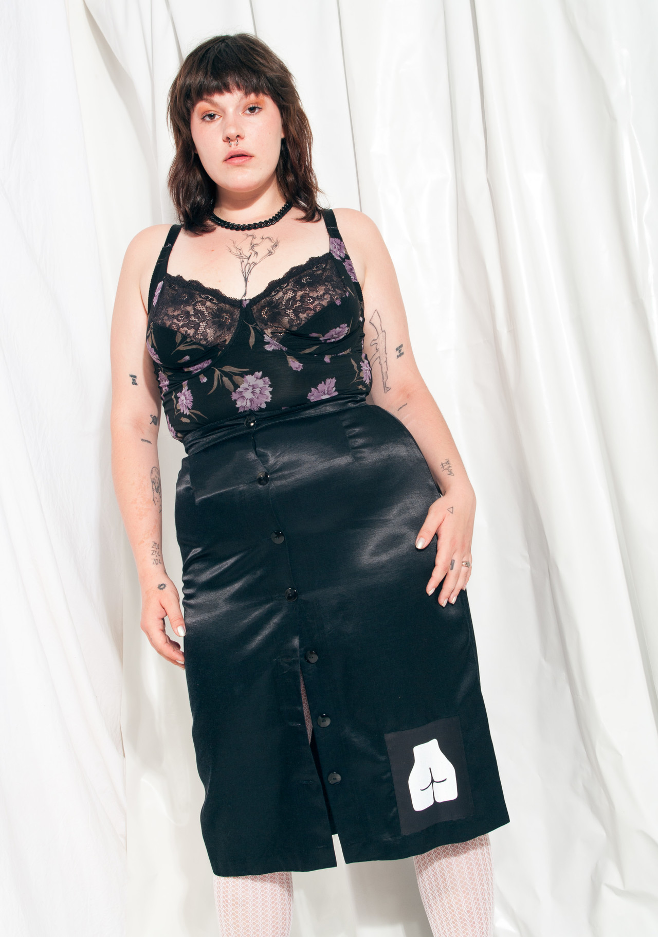 Be the first to review “Reworked Skirt 70s Vintage Black Satin Feminist Patch Midi” Cancel reply