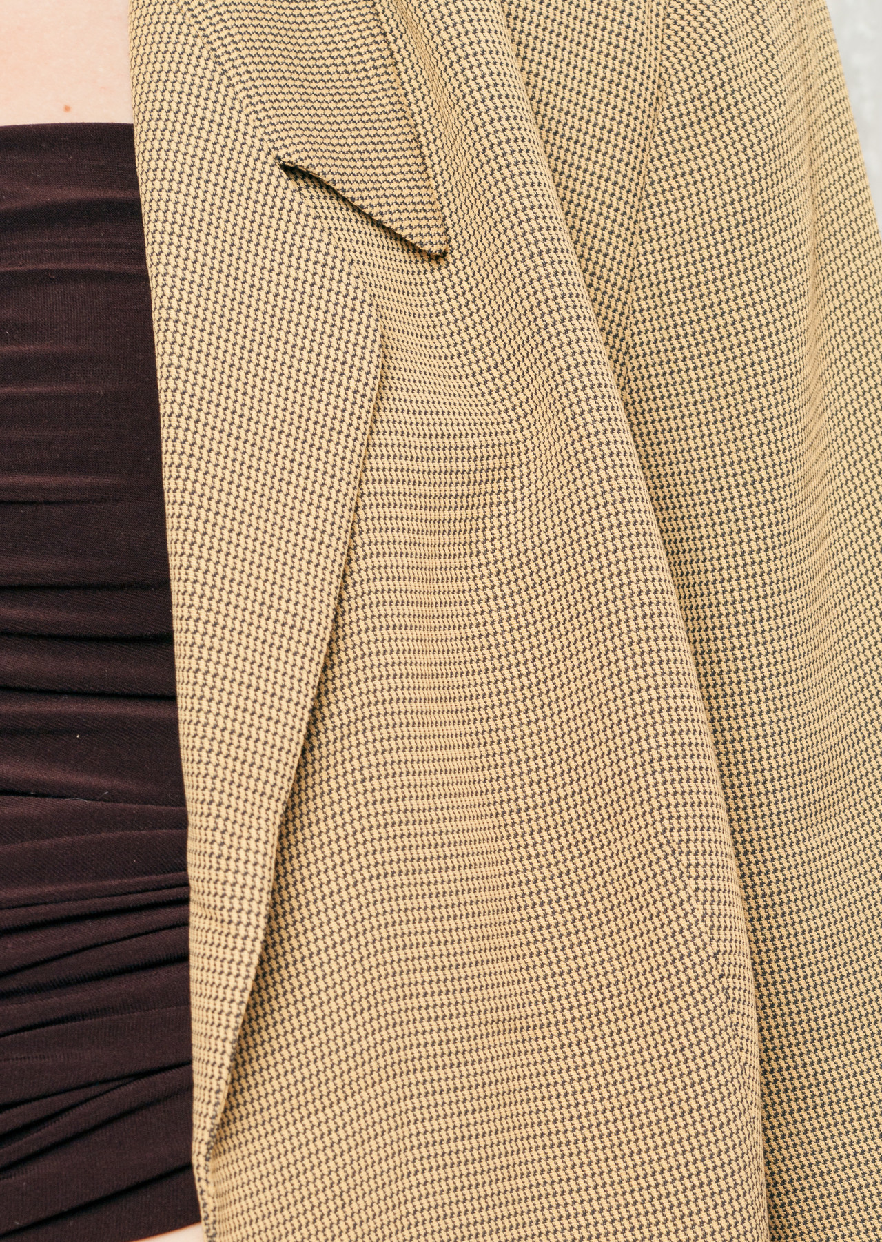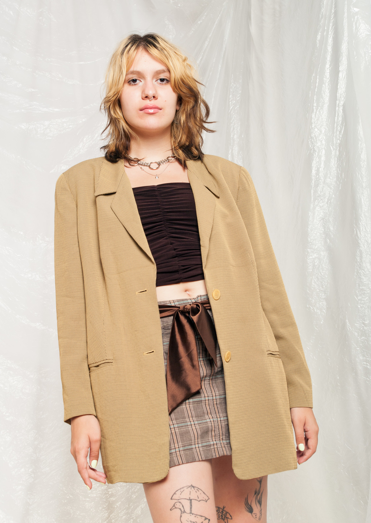 Vintage 80s Oversized Blazer Jacket in Beige Checked