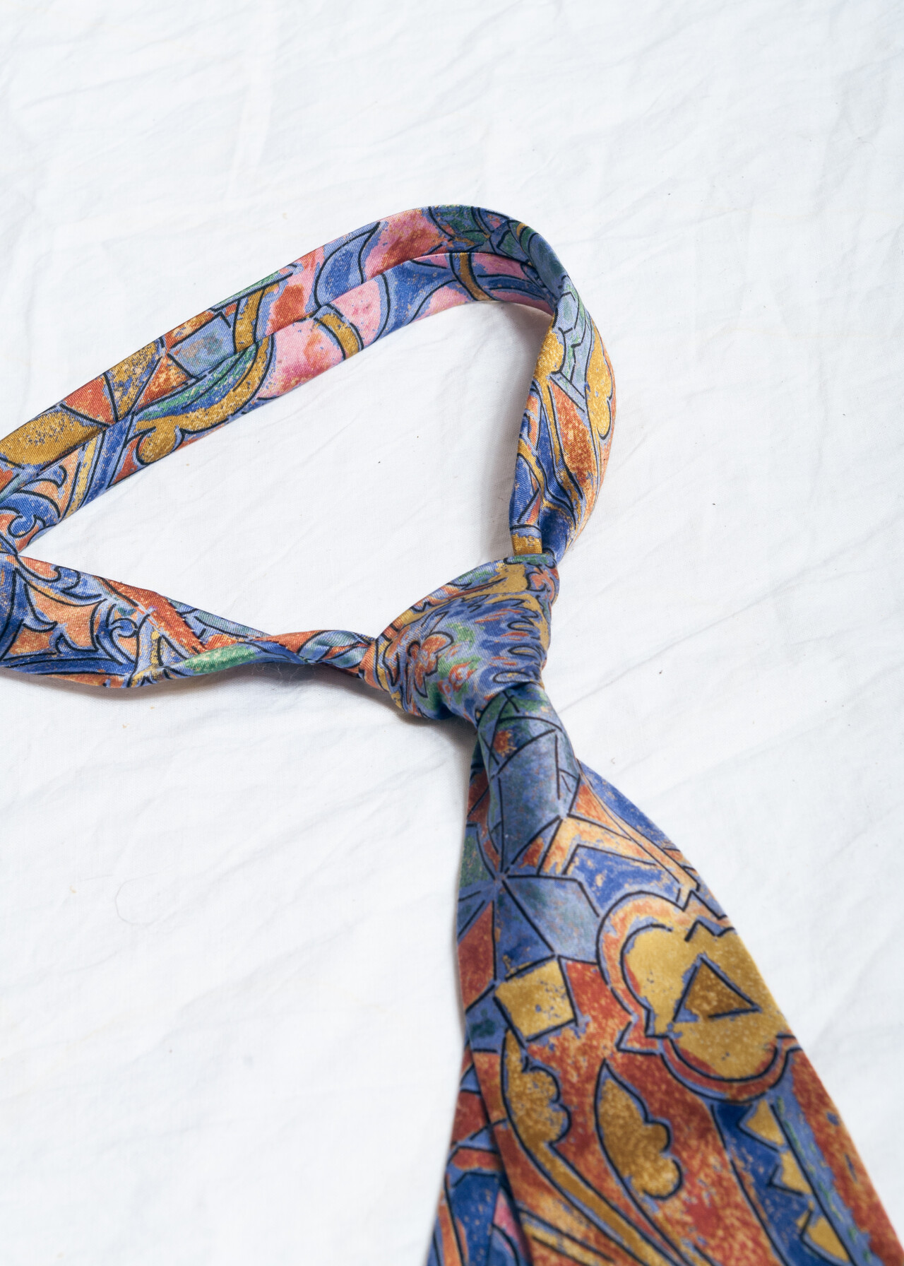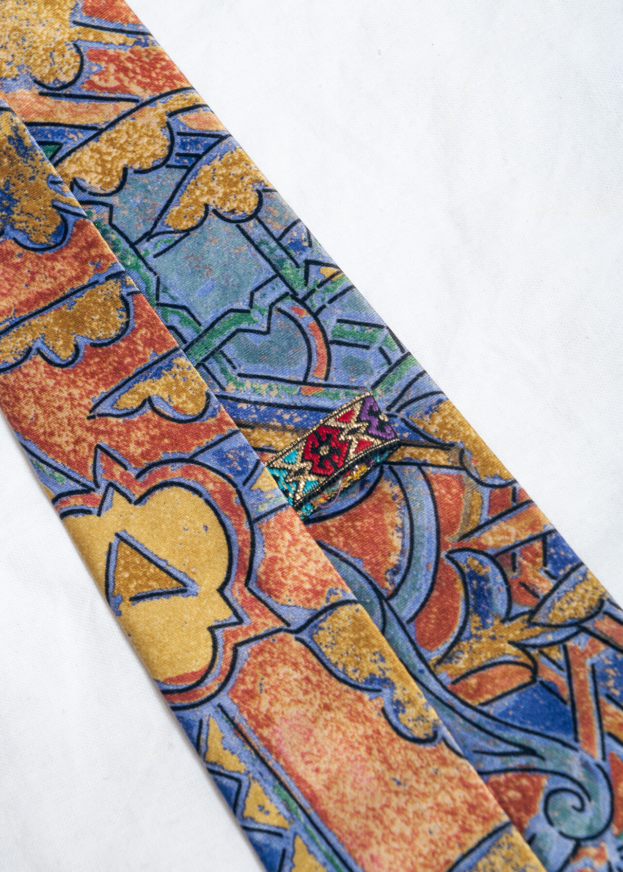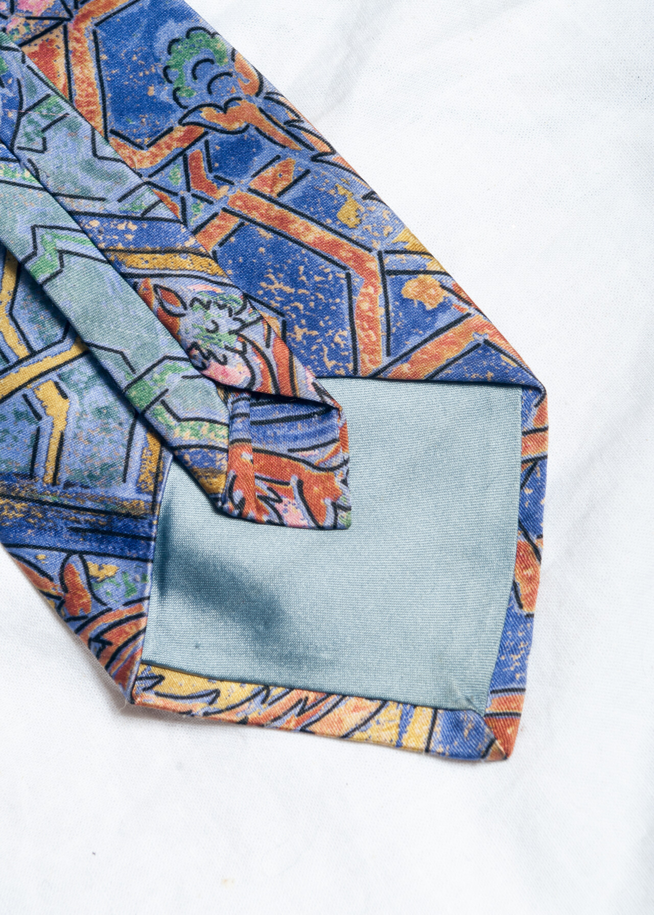 This 80s vintage tie is your pure silk passport to a world where graphic patterns ruled and brown and blue were the coolest kids in town.