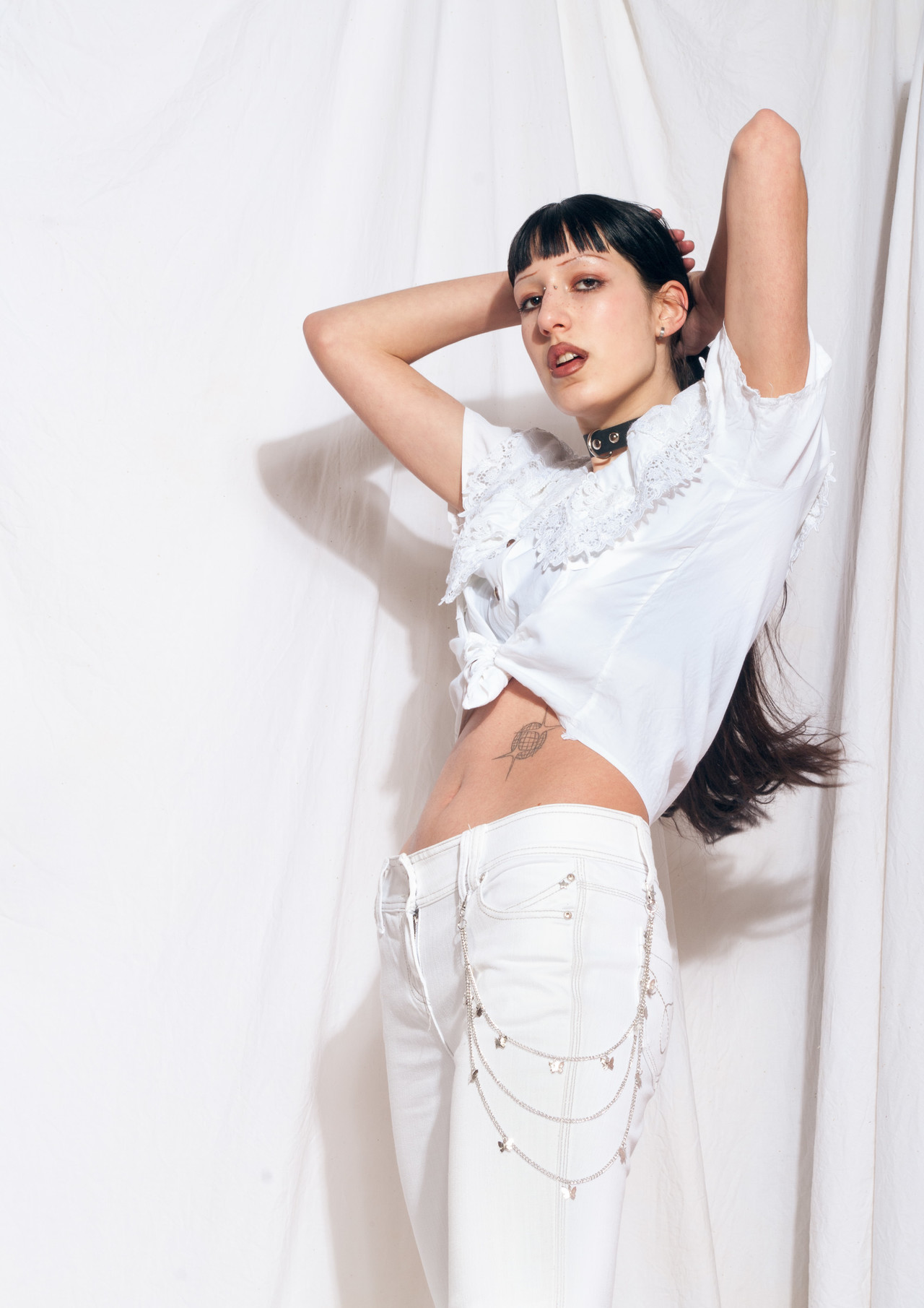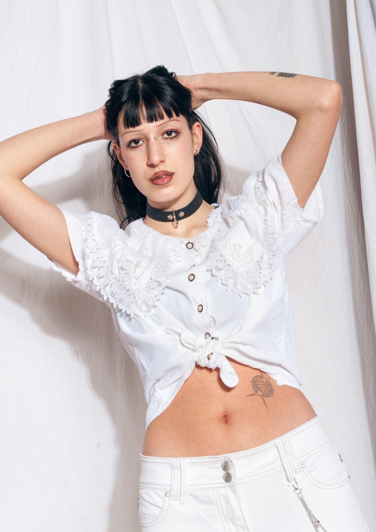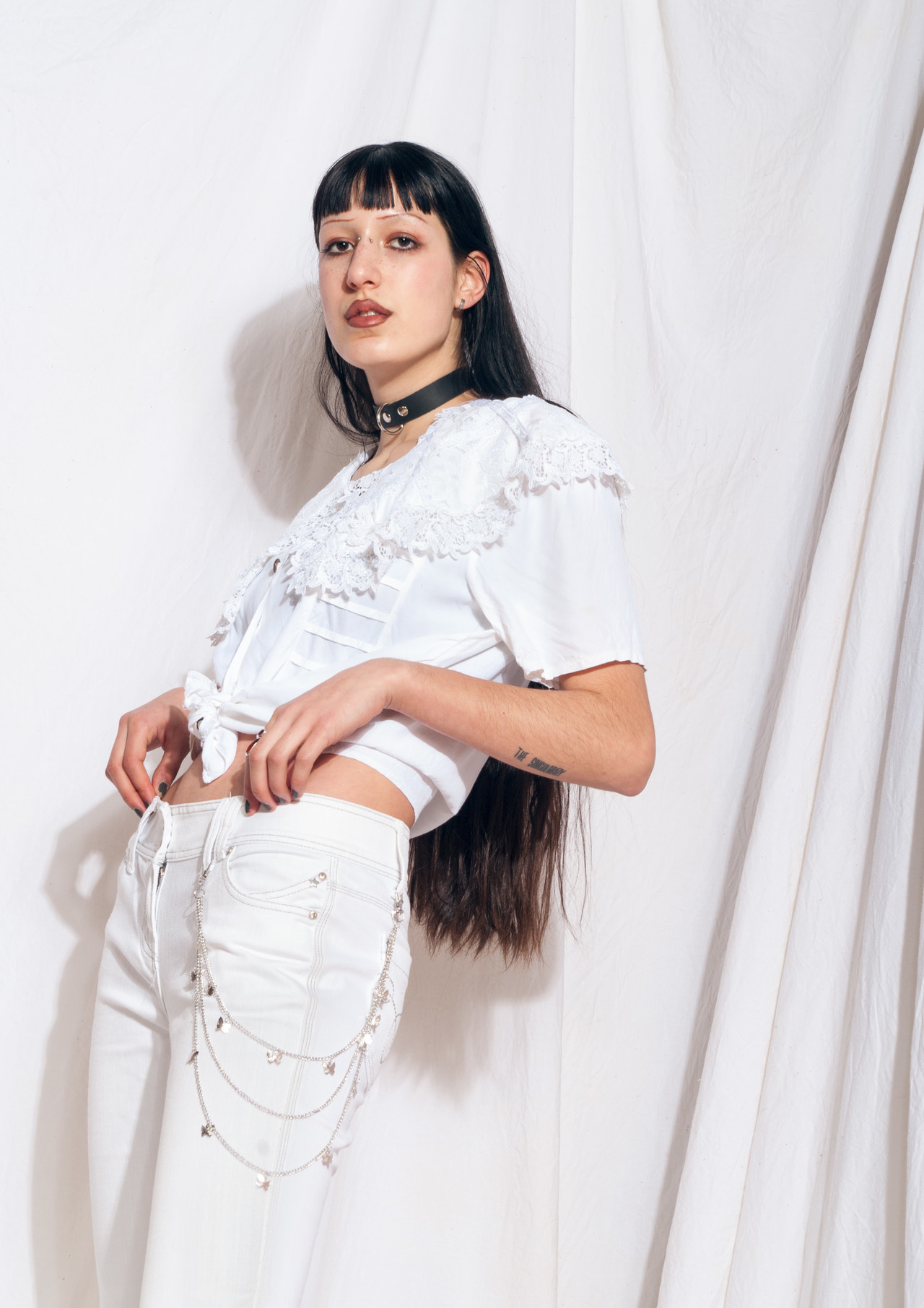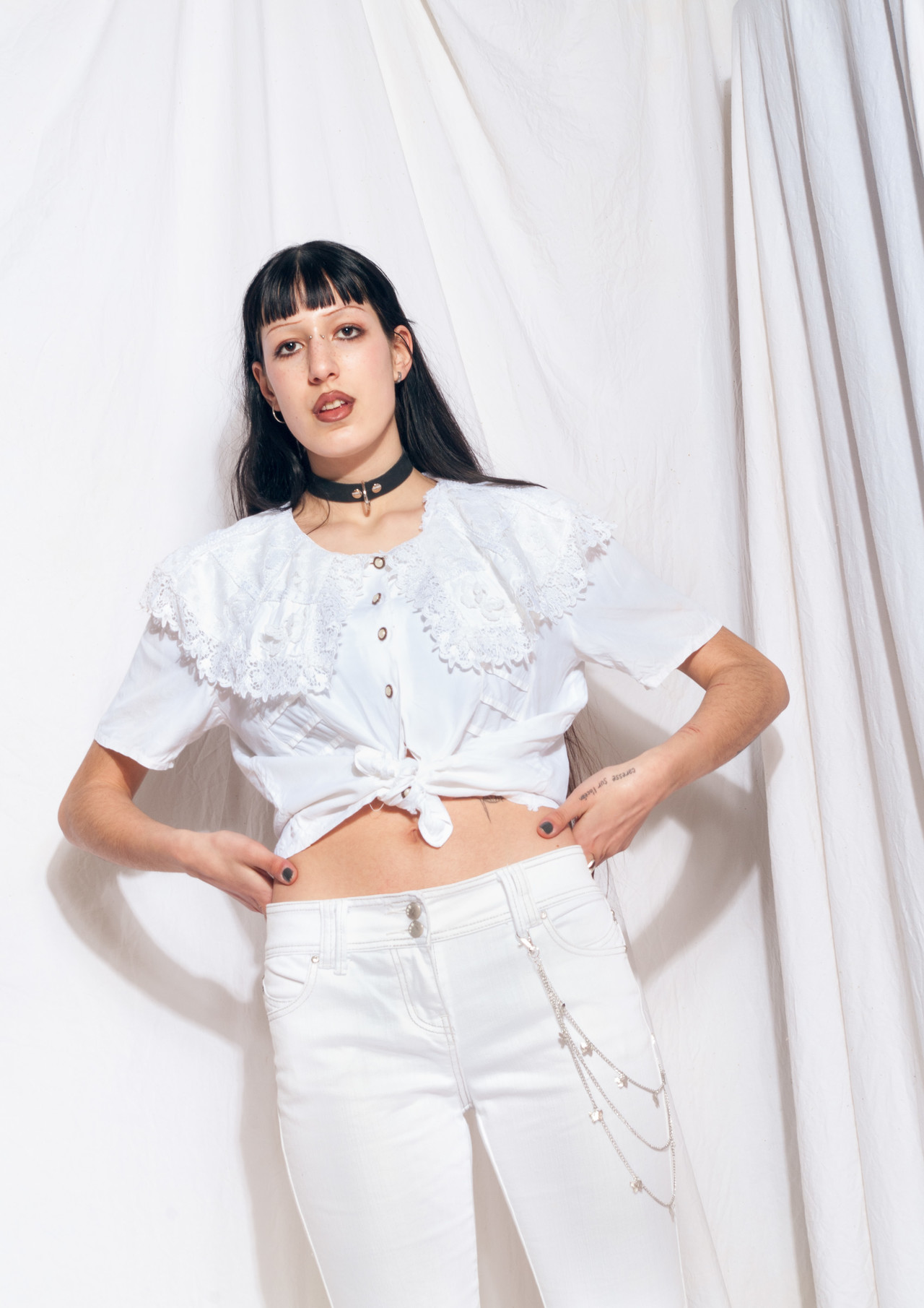 Be the first to review “Vintage Blouse 80s Wide Collar Lace Frill Top in White” Cancel reply
