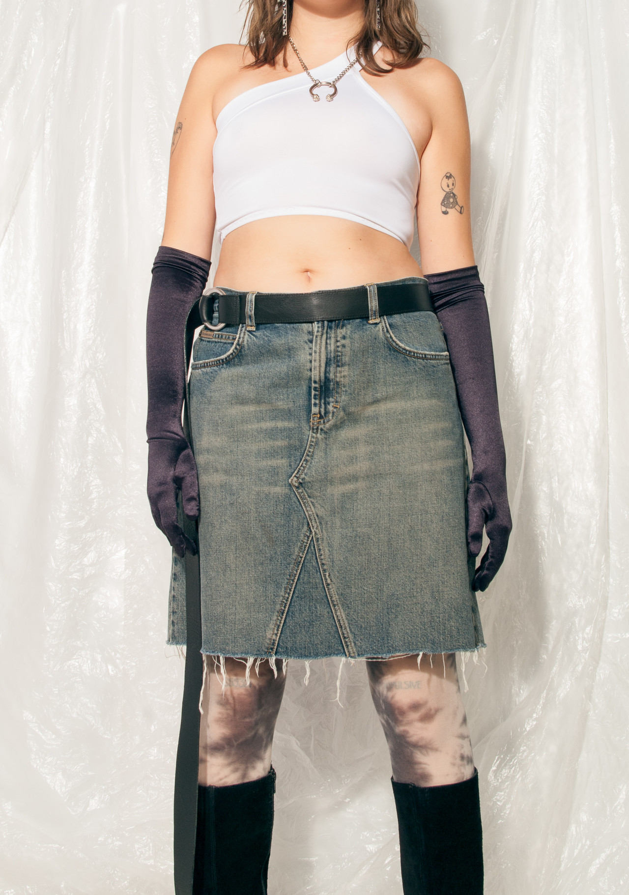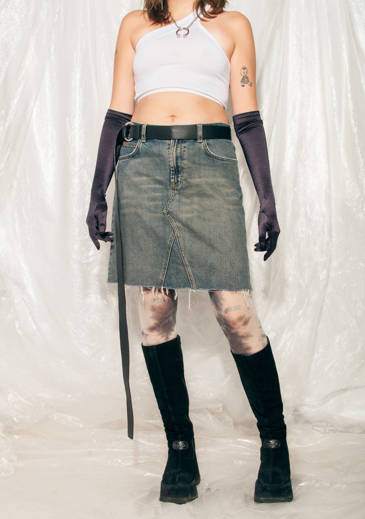 Vintage Skirt 90s Reworked Western Fringe Denim Mini