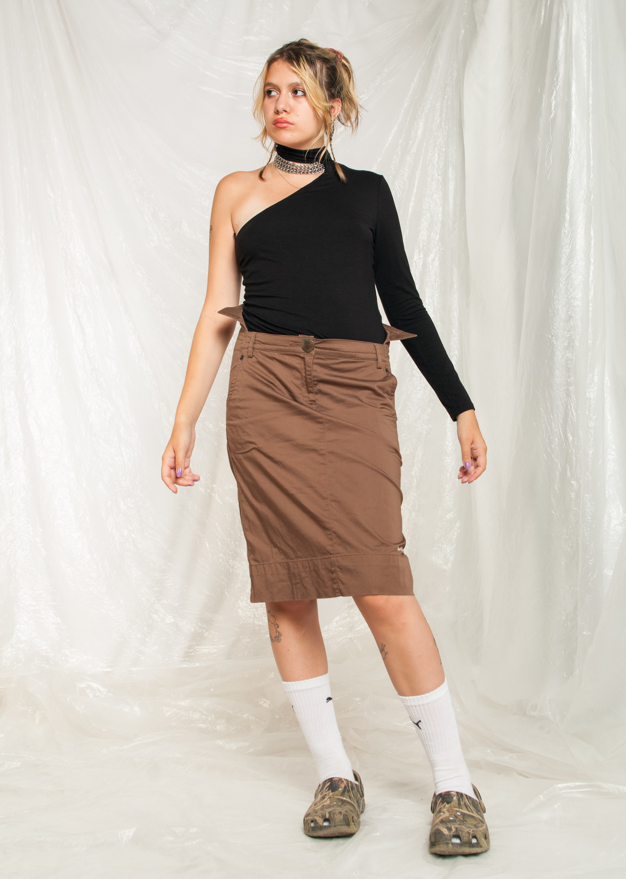 Vintage Cop Copine Skirt Y2K Weird Cut Midi in Brown