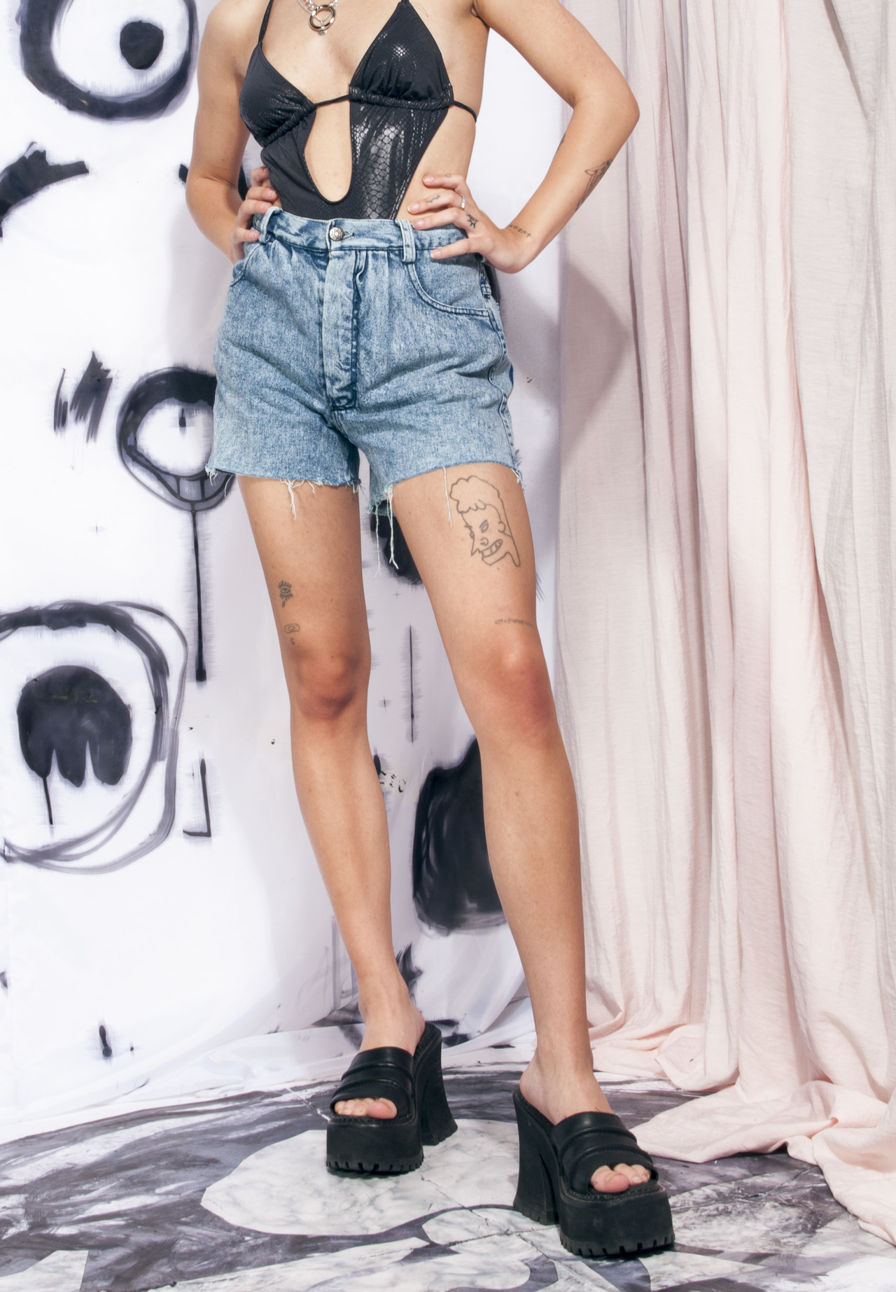 Vintage denim shorts 80s acid wash high waist cut-off jeans
