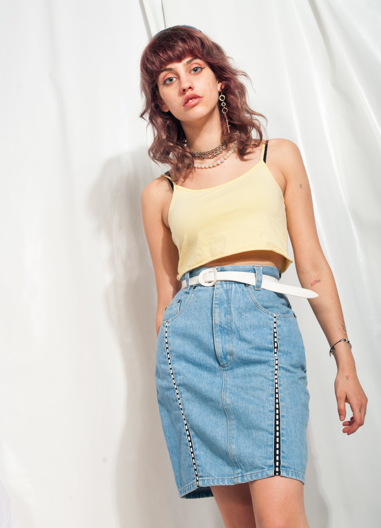 Say hi to this vintage denim skirt from the 80s, it’s hard to believe it is still in mint condition. It’s made of thick denim and comes with five pockets, a matching white belt and a button & zip closure. Nothing more to say, just our standard daily styling advice: this one is best worn with more vintage clothes.