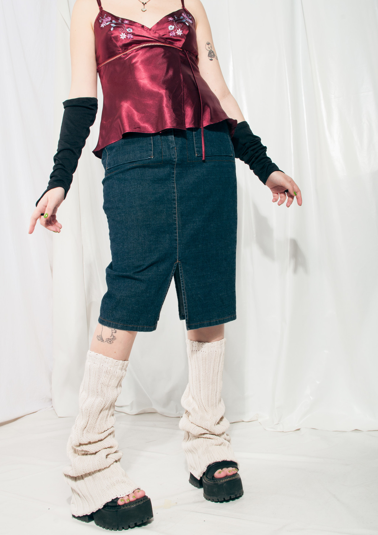 Vintage denim midi skirt, a Y2K gem still in mint condition. This babe features slightly stretchy denim fabric, two pockets and a zip & button closure. Save the planet, switch to vintage now!