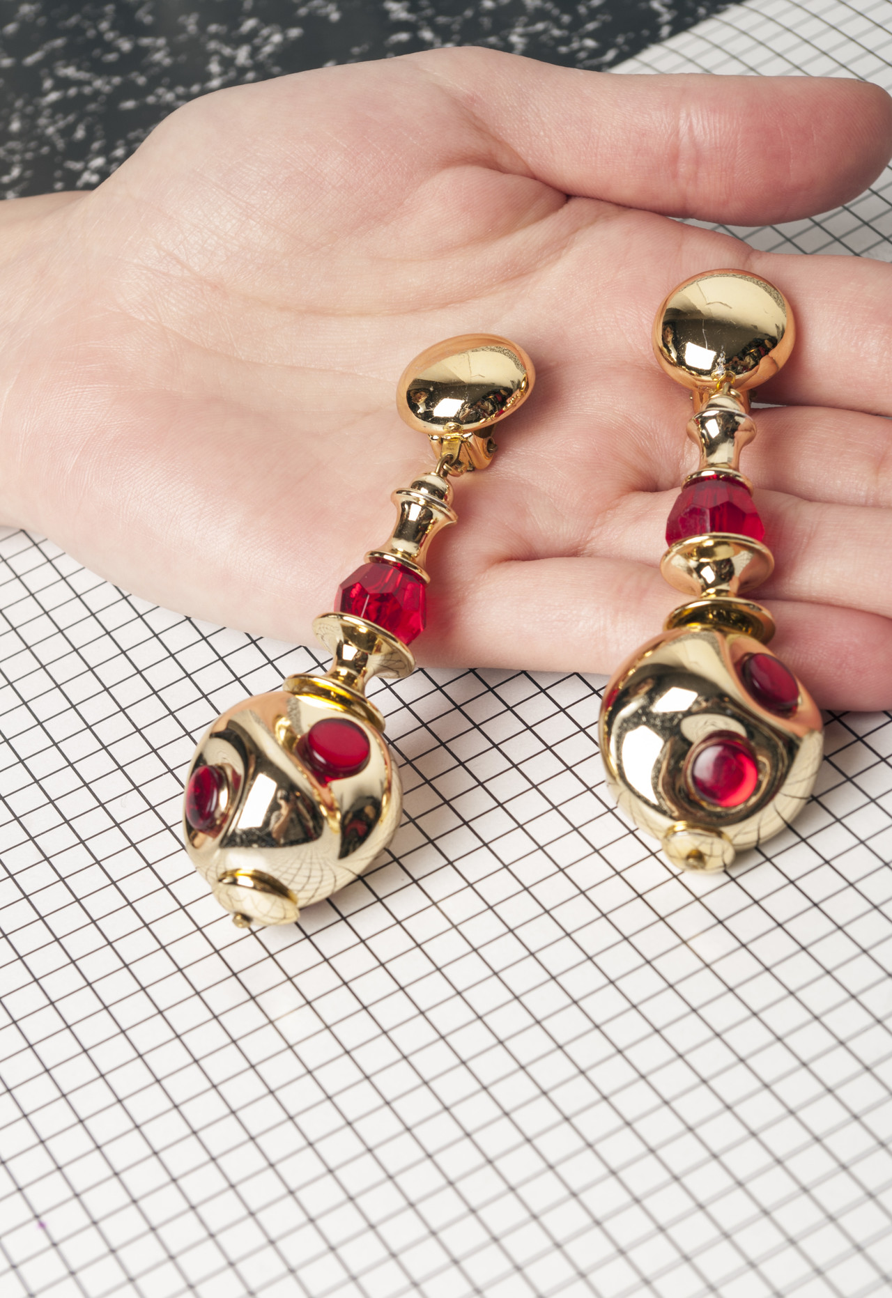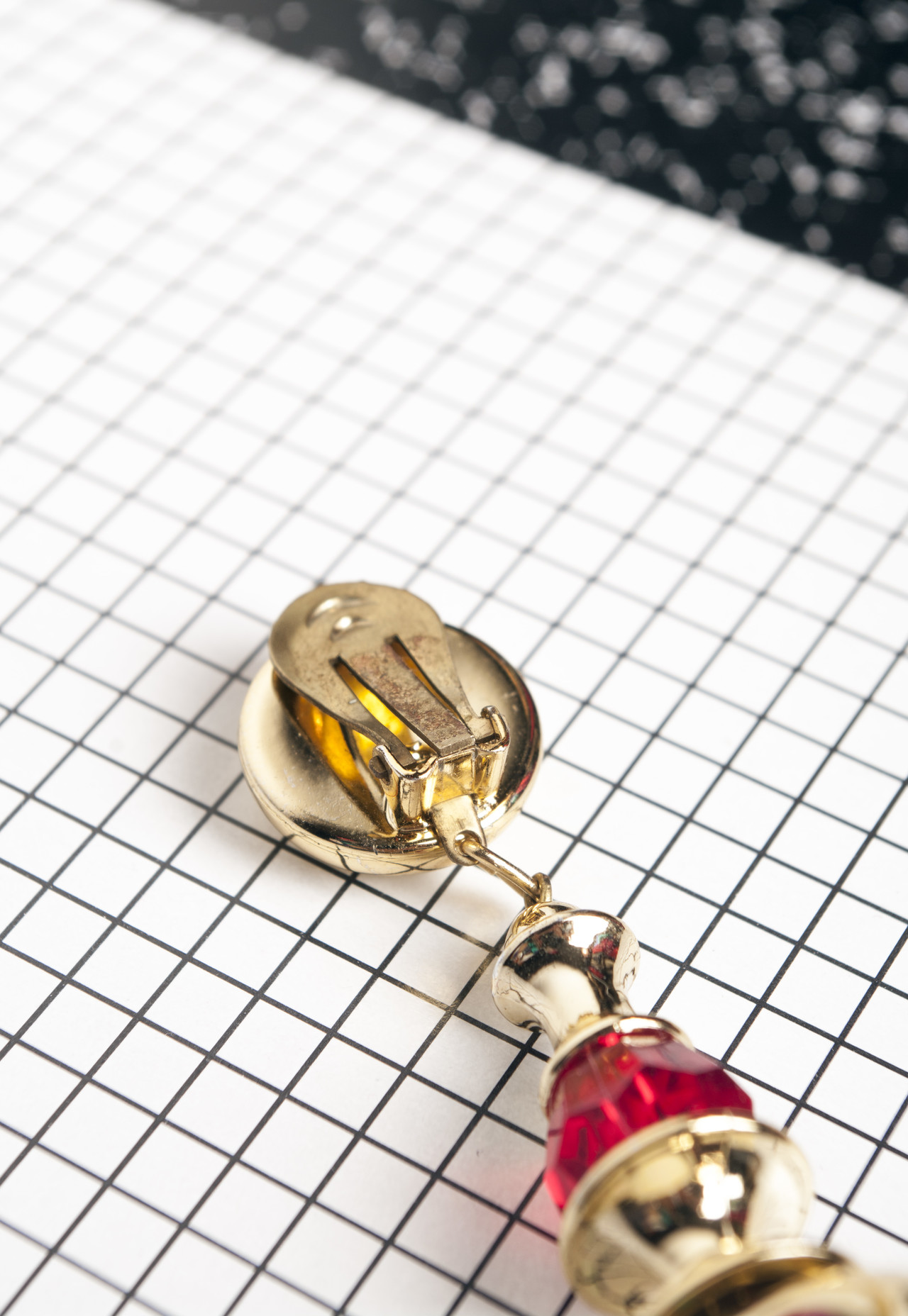 Vintage earrings 80s golden statement faux ruby clip-ons