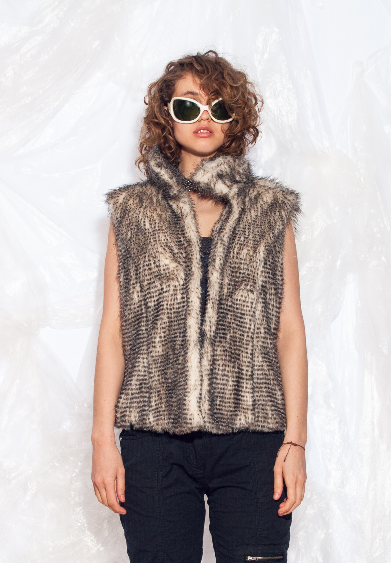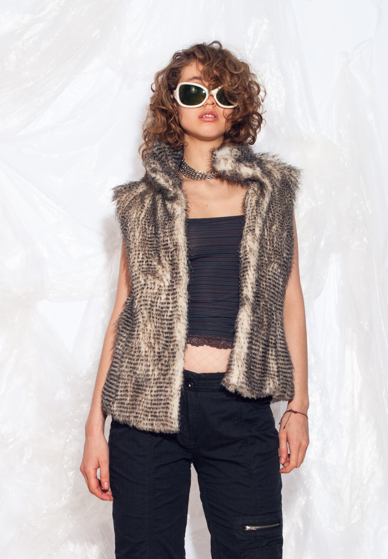 Y2K vintage faux fur vest in mint condition. Comes with a hook & eye closure and natural lining.