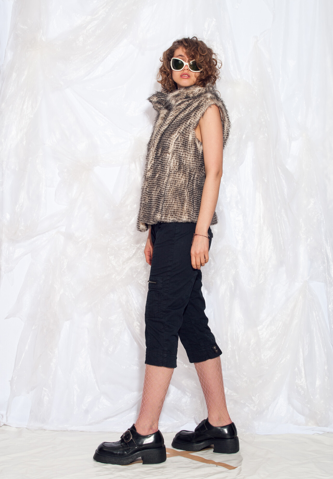 Vintage Faux Fur Vest Y2K Waistcoat in Brown